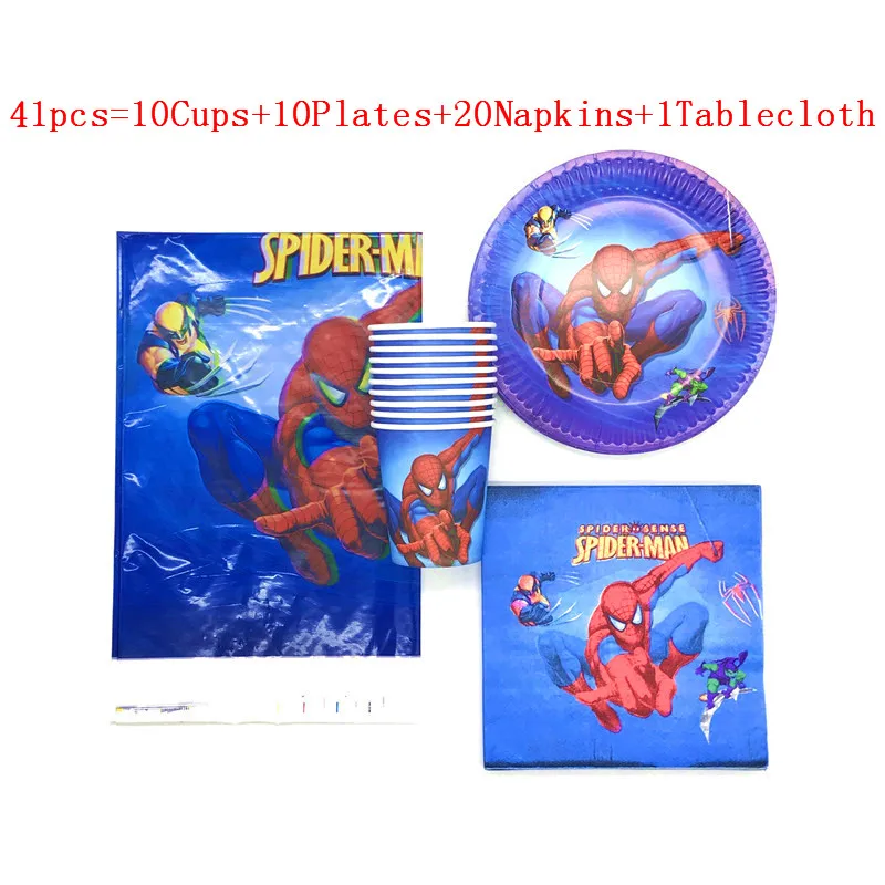 Украшение для вечеринки в честь Дня Рождения Человека-паука, детская одноразовая посуда, тарелка, скатерть, фотография