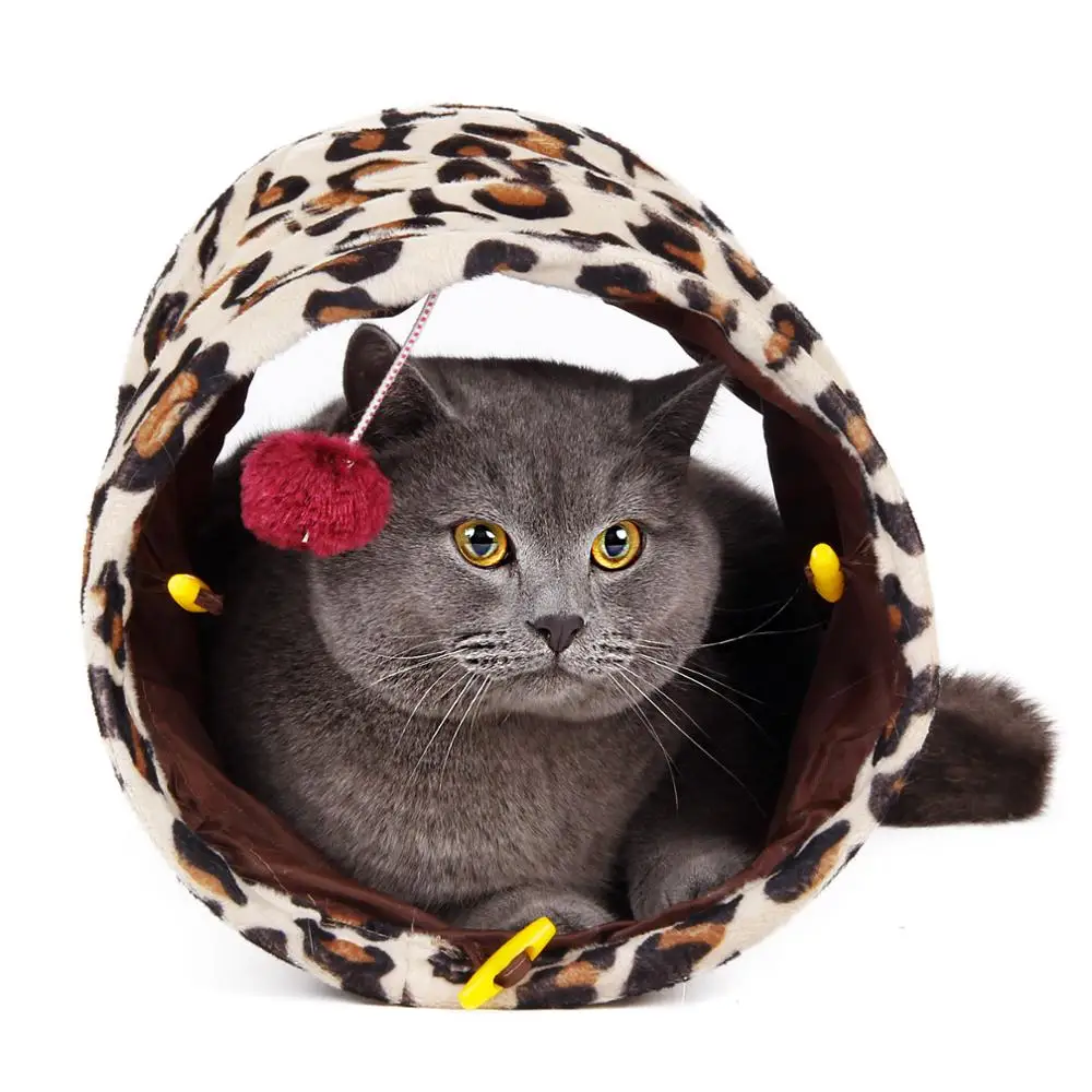 Туннельные Игрушки для домашних животных, Леопардовый туннель с мячом, котенок, игрушка для кошек, котенок, складной кролик, игрушка для кошек