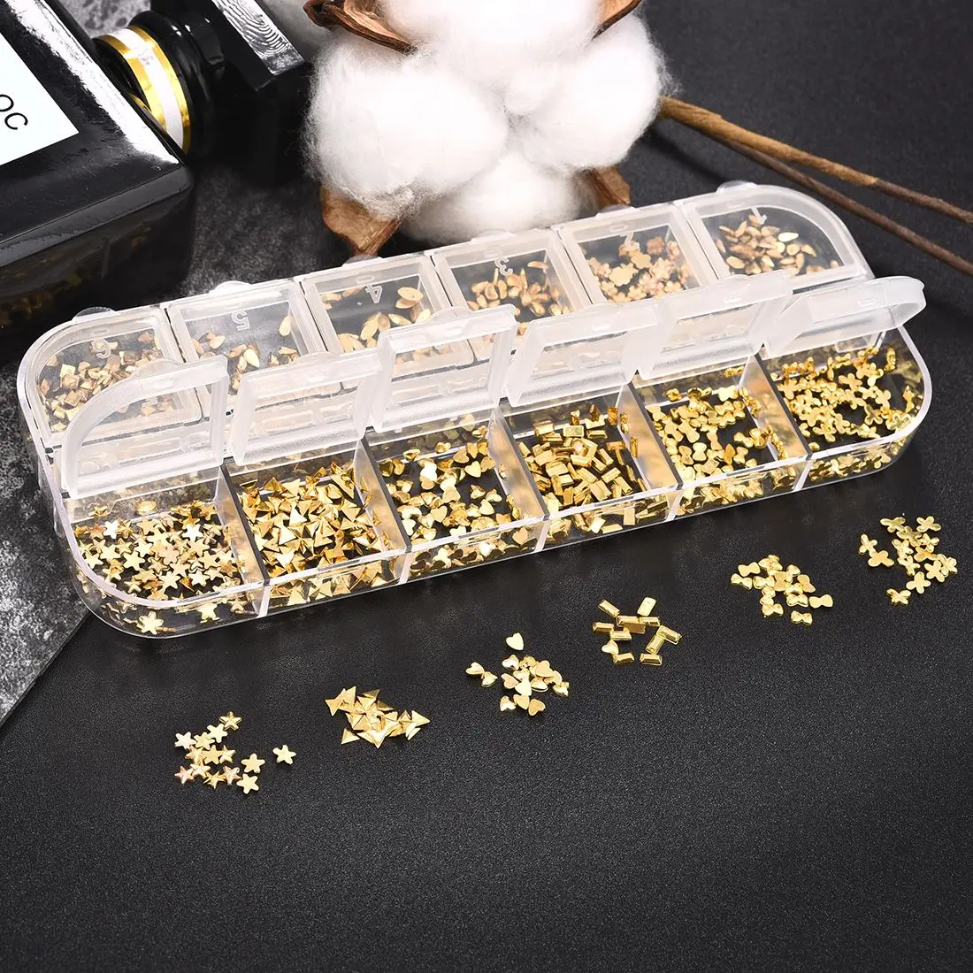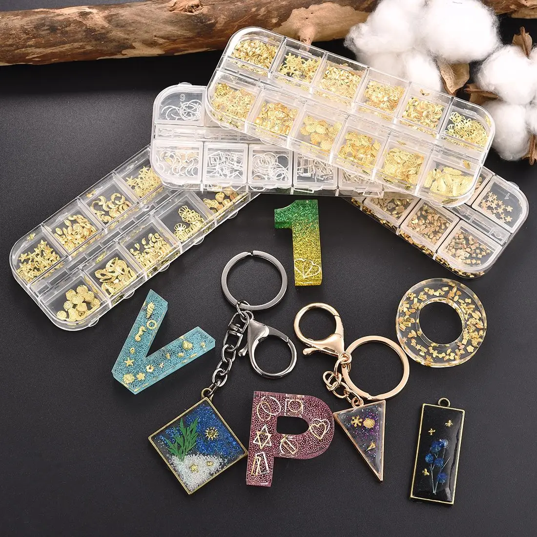 Заливочные материалы для украшений сделай сам, 1 коробка, наполнитель для декора ногтей из эпоксидной смолы, в форме сердца, звезд, цветка, Луны, золотистого цвета