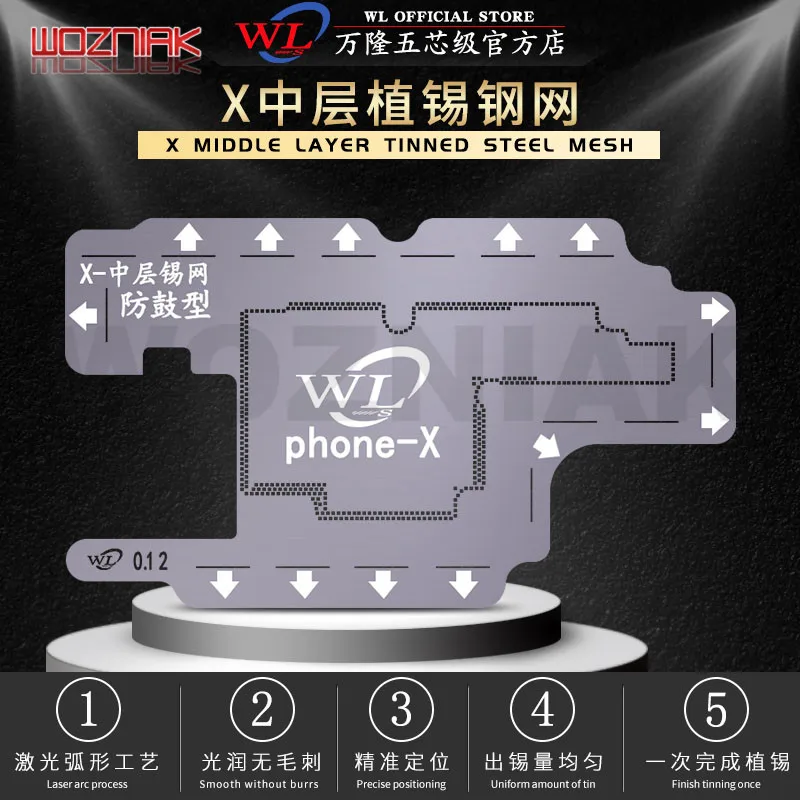 WL для iphone XXSXSMAX11 PRO MAX трафарет для реболлинга BGA Средняя основная плата специальная Оловянная стальная сетка для посадки