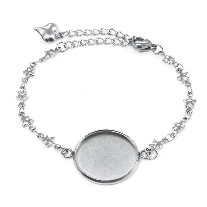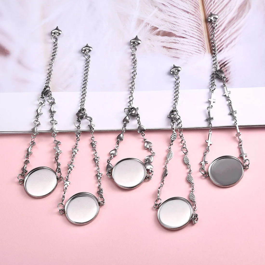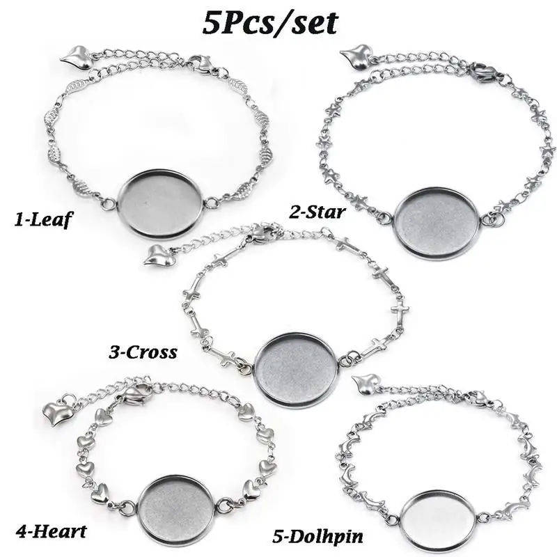 5 шт. DIY Нержавеющаясталь браслет базовый набор круглый кабошон ти...