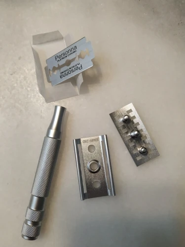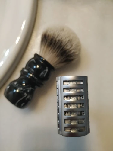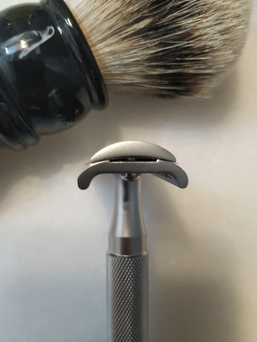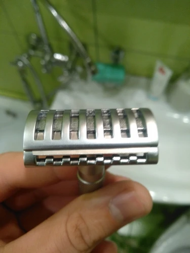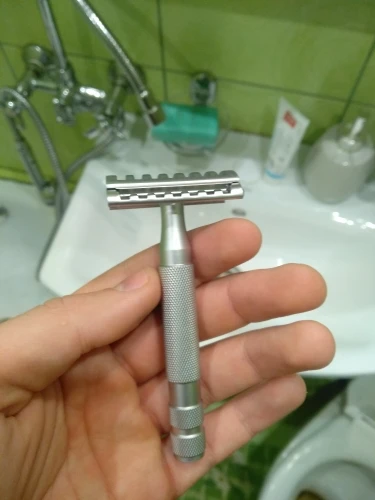 Это то что я искал . Достаточно агрессивная , с моей щетиной , которая как проволока , справляется на ура . Могу сразу сказать что не для новичков и не каждому подойдёт . Довольно тяжеловата ( взвешивал 98гр.) , благодаря чему уверено лежит в руке . То что она матовая даёт ещё один плюс к тому что в руке не скользит и при падении если поцарапаться не будет сильно этого видно . Из минусов - это не очень хорошо обработана голова , если снаружи по внешке всё ок , то внутри при откручивание видно лёгкие зазубрины . Конечно мог сказать что можно было сделать и лучше но за ту сумму которую я взял (1,5k ₽) всё даже очень хорошо . (Фотографировал вместе с лезвием чтобы было видно угол атаки)