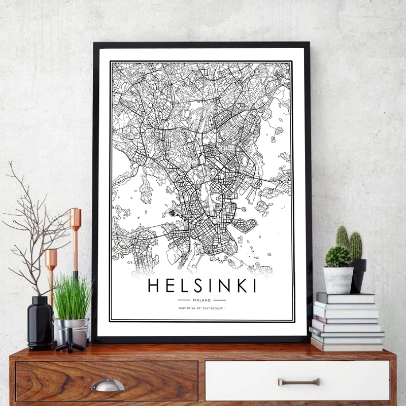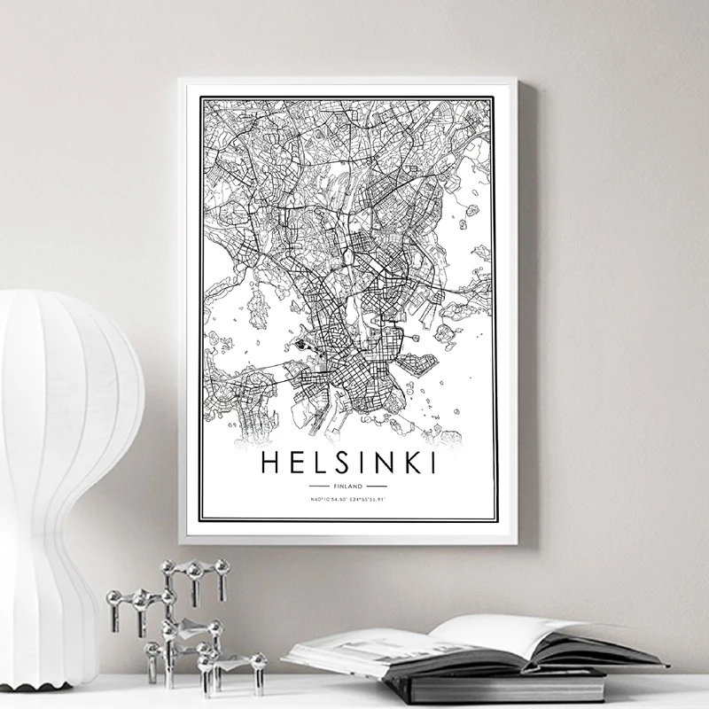 Черно-белая карта города Хельсинки, настенный художественный плакат, дорожная печать, картина, нордическая декоративная картина, Финляндия, Хельсинки, домашний декор