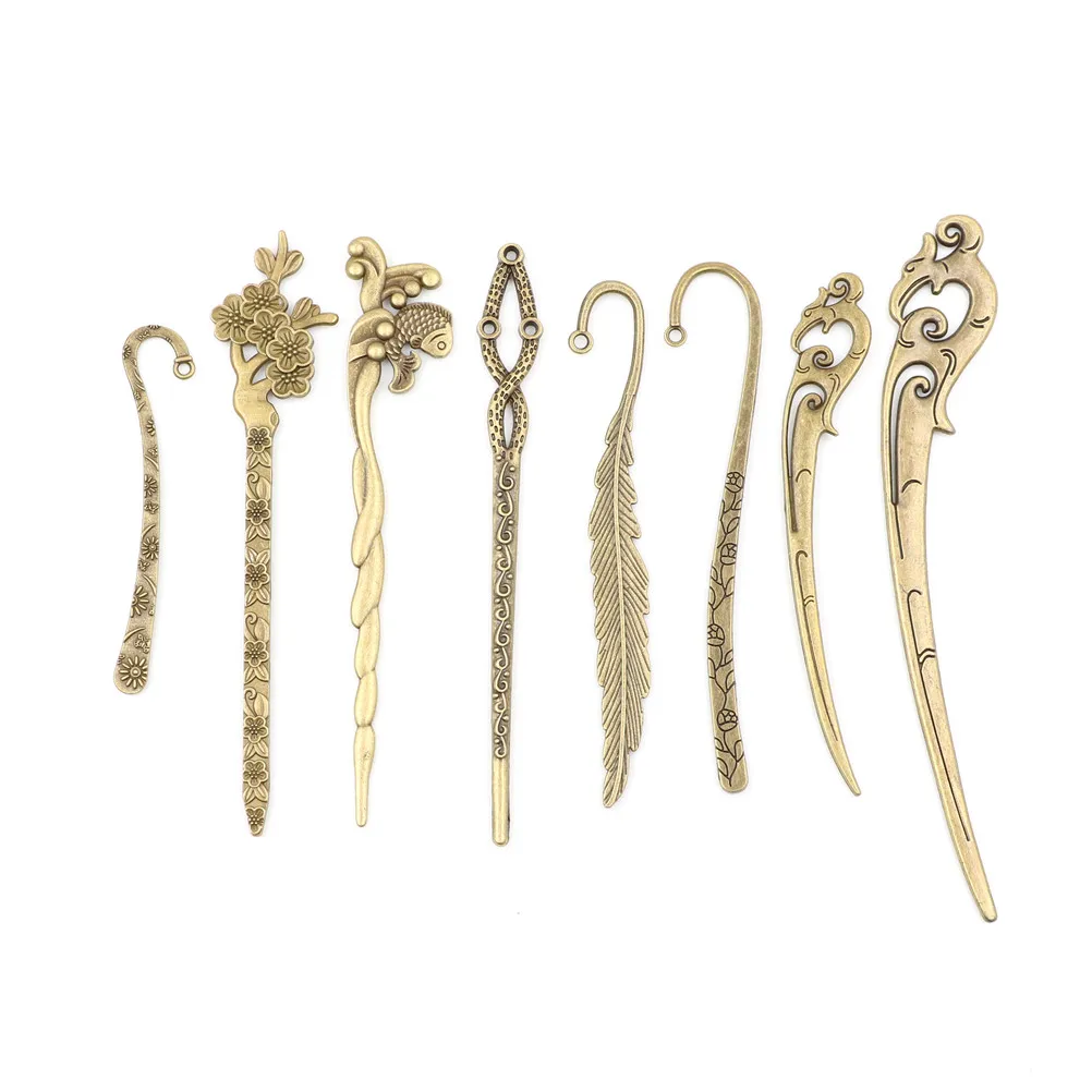 8 стилей бронзовые Винтажные заколки для волос, заколки для волос, модные заколки для волос из сплава для женщин, элегантные женские аксессуары для волос