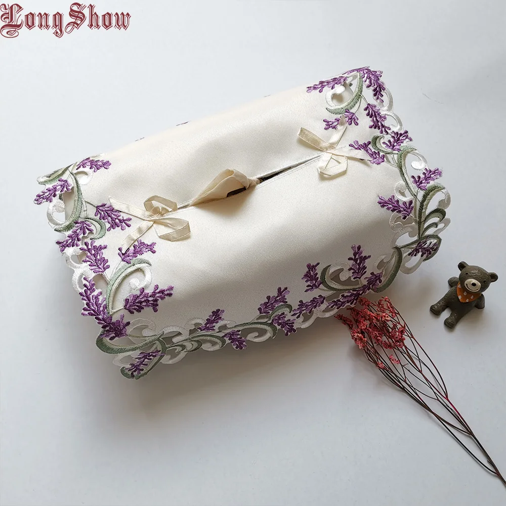 Креативный оригинальный дизайн лаванды домашний отель стол декоративная вышитая кружевная большая коробка для салфеток чехол