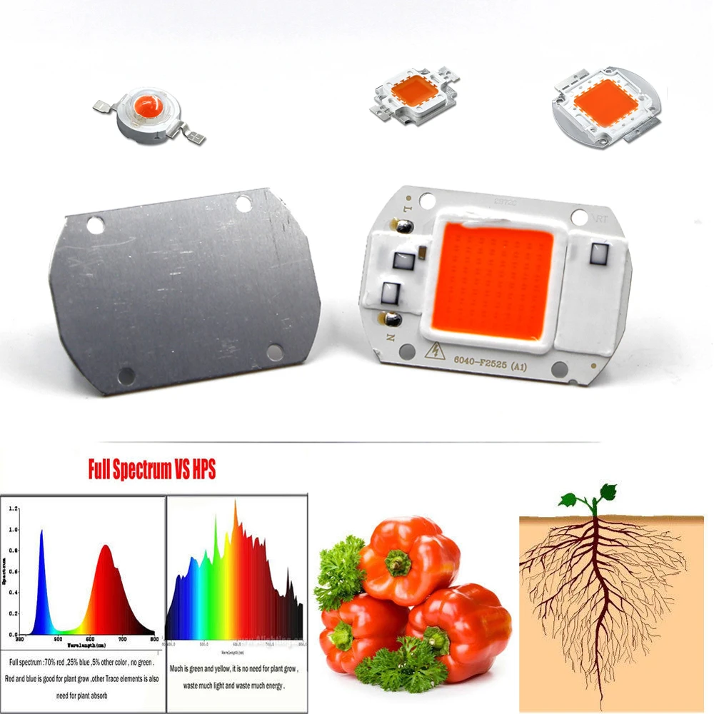 Светодиодный COB-чип для выращивания растений, полный спектр, 220 В, 110 В, 20 Вт, 30 Вт, 50 Вт для выращивания комнатных растений, рассады и цветов