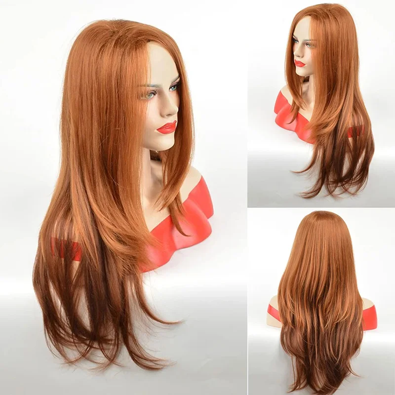 Amir парик длинные прямые парики с челкой синтетический оранжевый цвет женский парик 24 дюйма боковая часть парик для женщин