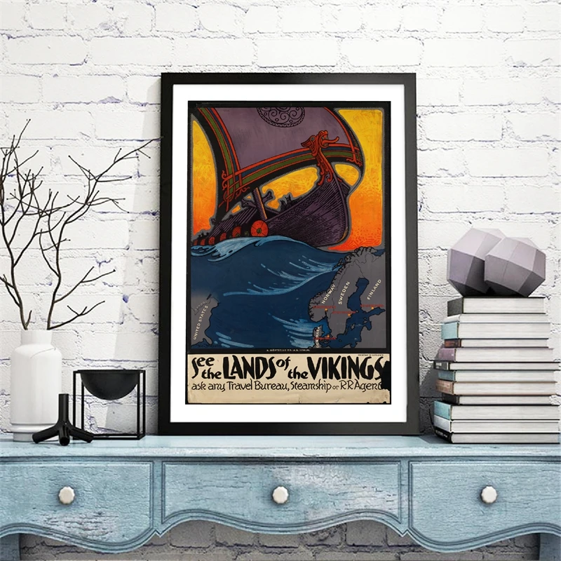 Скандинавские страны старый винтажный постер для путешествий Viking longboat морской настенный художественный холст с принтом скандинавский стиль декоративная картина домашний декор