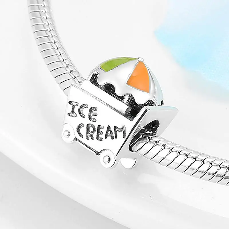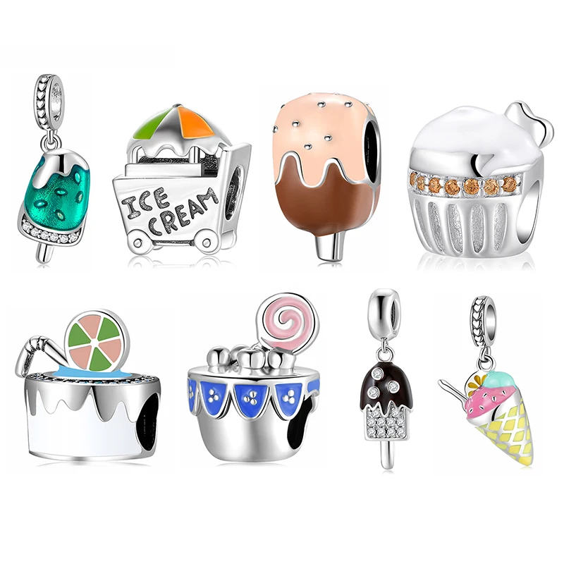 Подлинные серебряные бусины-подвески в виде мороженого, подходят для оригинального браслета, изготовления ювелирных изделий 2020