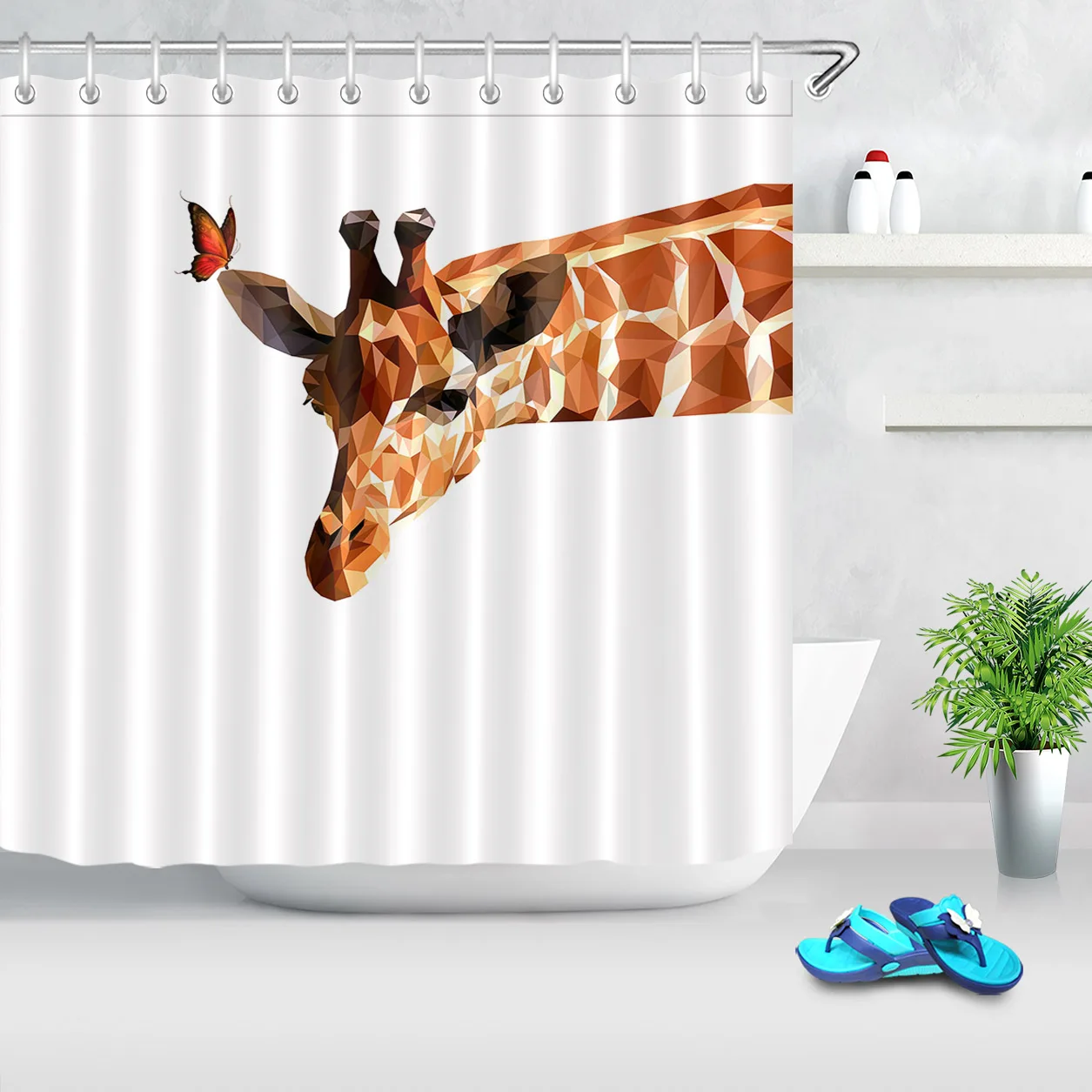 Штора для душа из ткани с изображением диких животных, s, жираф, Бабочка, водонепроницаемая занавеска для ванной, водонепроницаемая полиэфирная Экологически чистая душевая занавеска для ванны