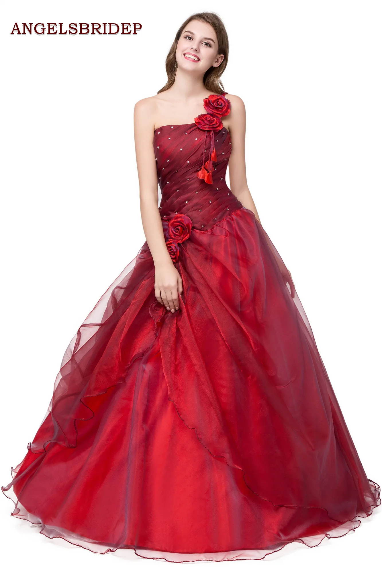 ANGELSBRIDEP Quinceanera платье красные платья 15 лет сексуальные на одно плечо маскарадные Бальные платья Вечерние платья 2020 Лидер продаж