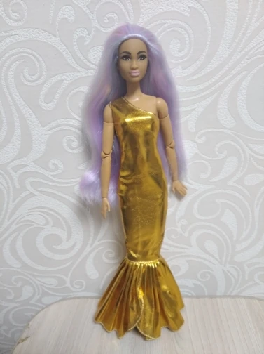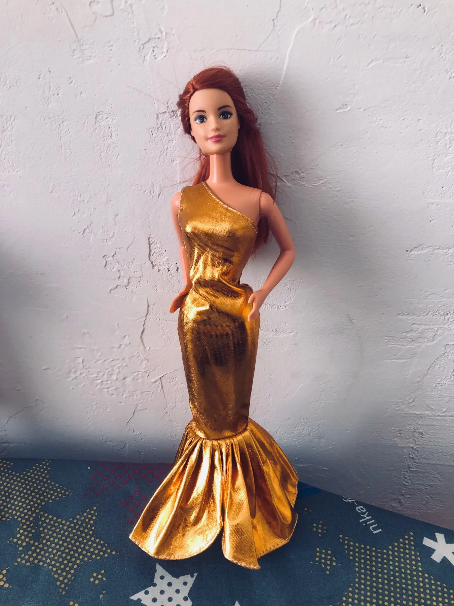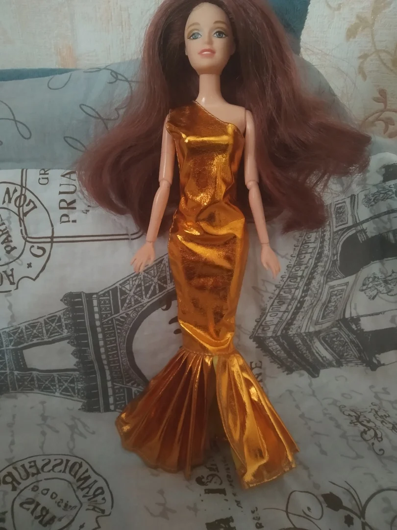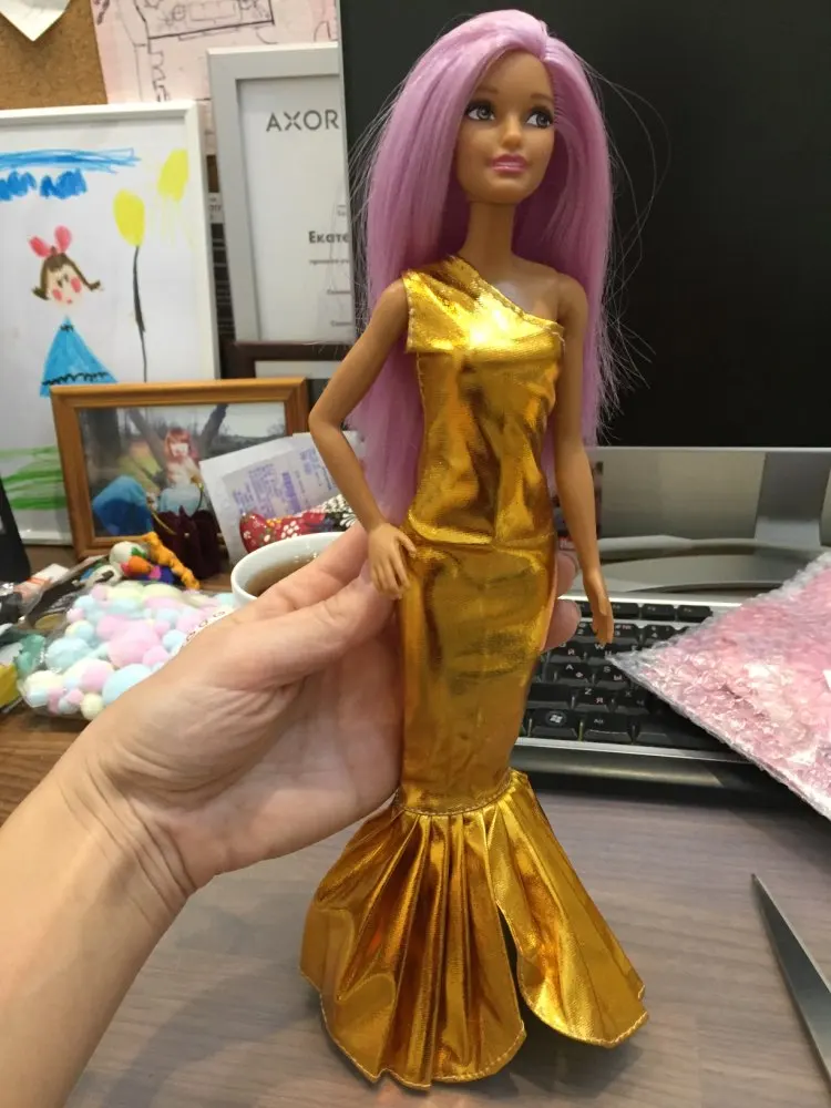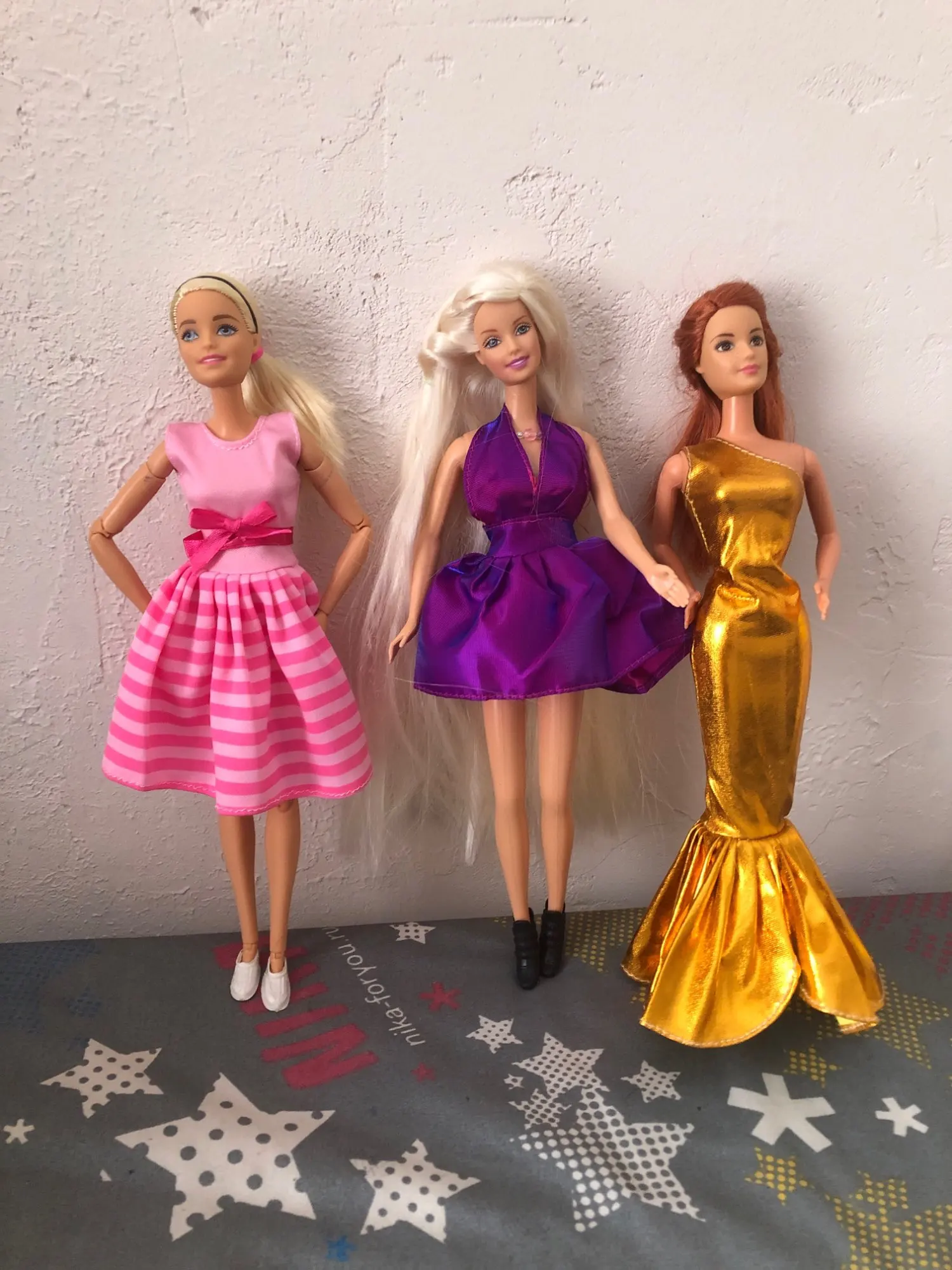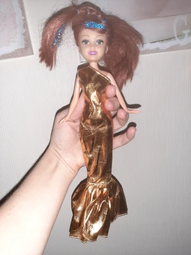 Платье супер! Пришло быстро, прошито все хорошо, и липучка на платье как у оригинальных изделий от барби. На стандартную барби отлично.