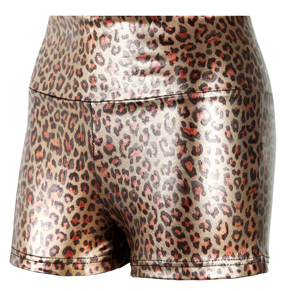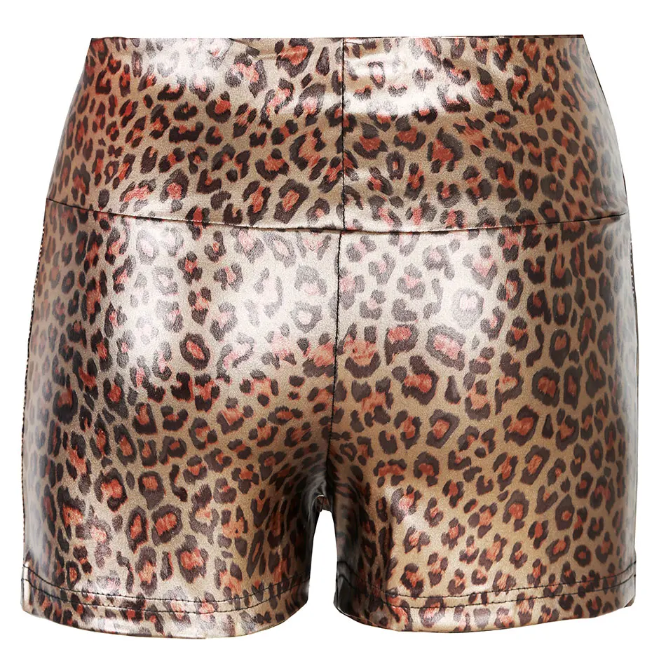 Блестящие шорты женские Золотые шорты со средней талией женские тонкие леопардовые эластичные шорты из спандекса модные сексуальные Клубные