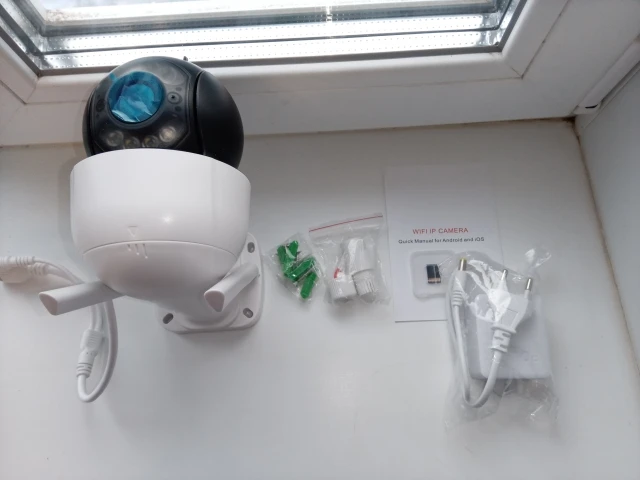 Камера доставлена в комплектности, как заявлено продавцом. Коробка слегка помятая, комера не пострадала и работает. Тестировал, все работает, управление через приложение (установил через сканированный QR код в мануале во вложении был) со смартфона IOS. На поворотной части камеры имеются небольшие потортости/царапины. После установки отзыв дополню.