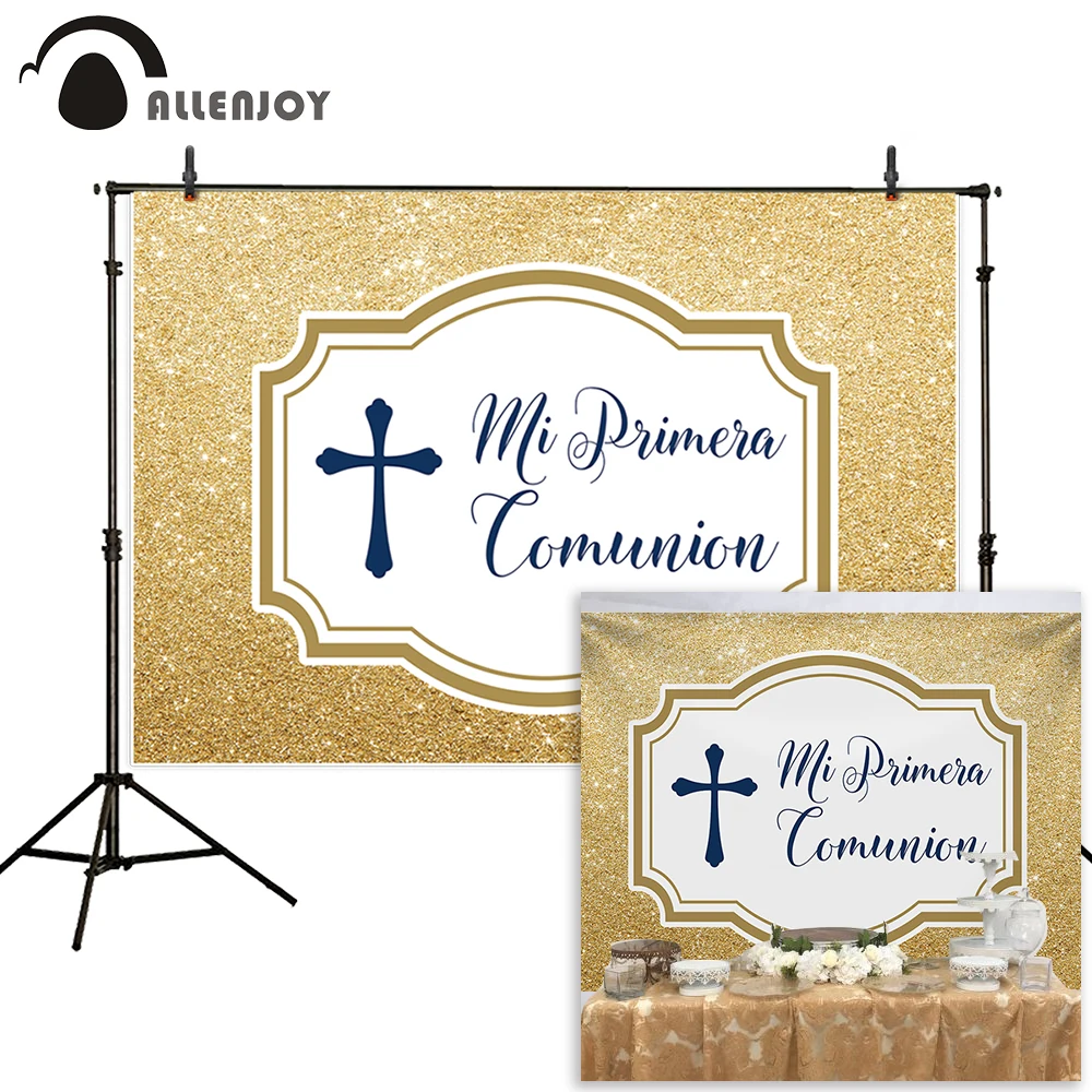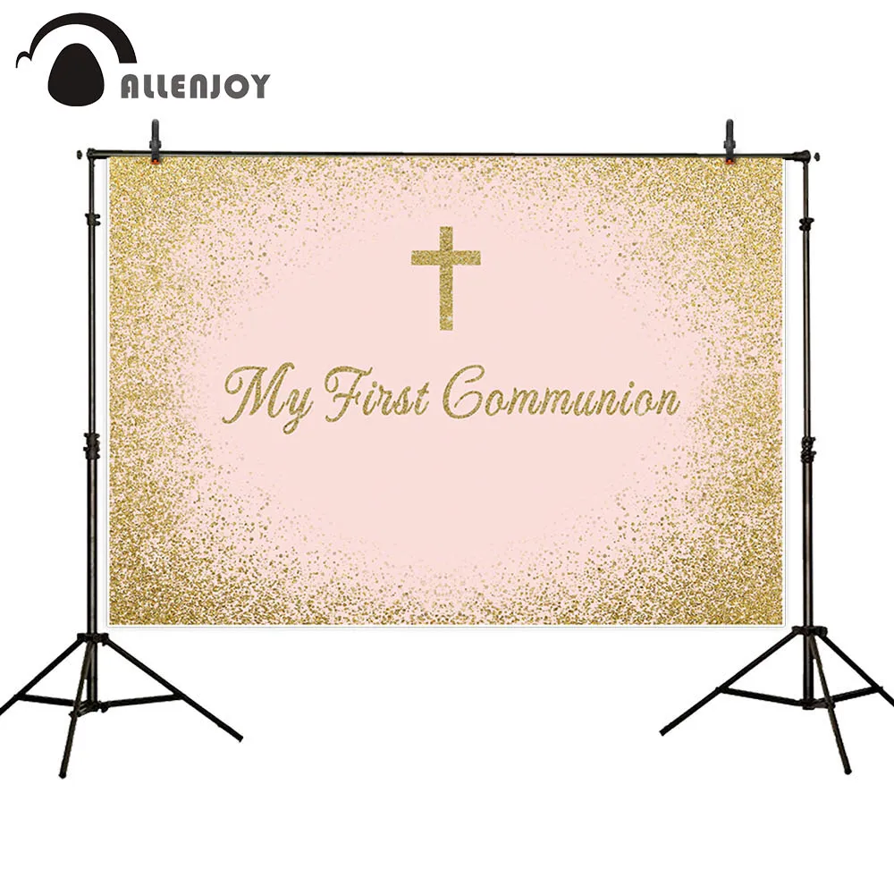 Allenjoy Золотой Фон для фотосъемки Мое Первое причастие письма крест блестки фотозонт Декор детское торжественное мероприятие стены вечерние баннер