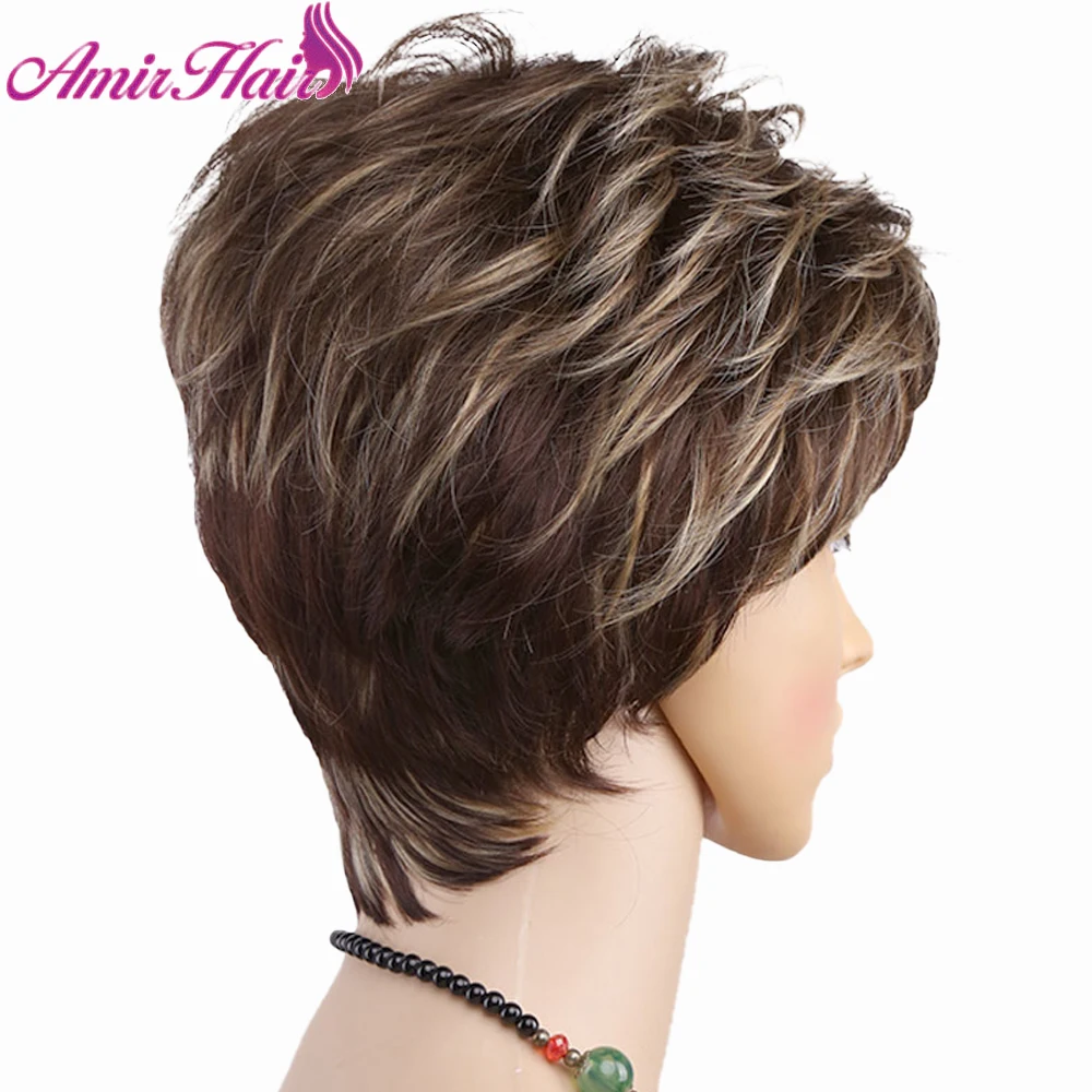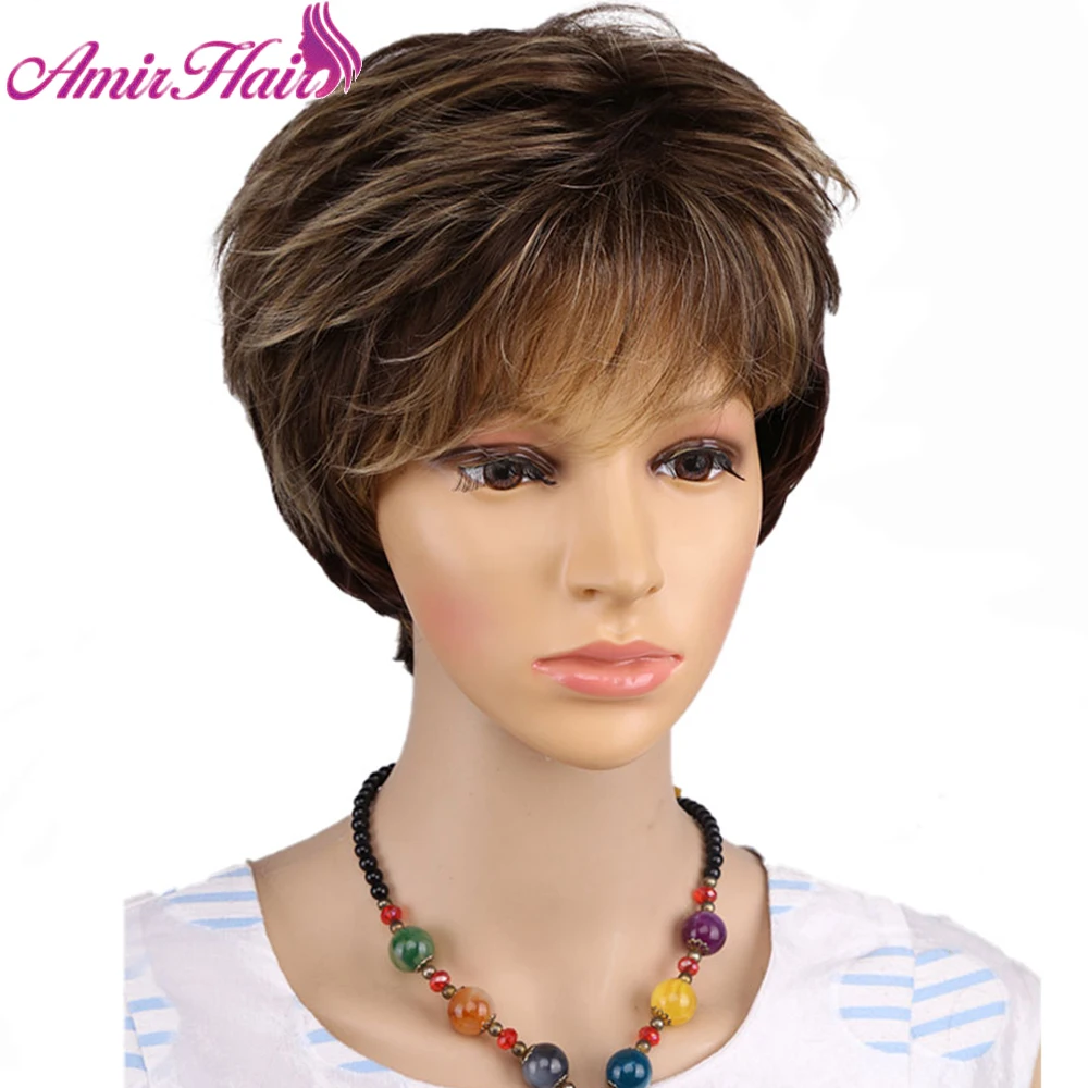 Amir короткие парики для женщин Синтетические прямые волосы коричневый блонд парик Многослойные пышные парики для мамы парики
