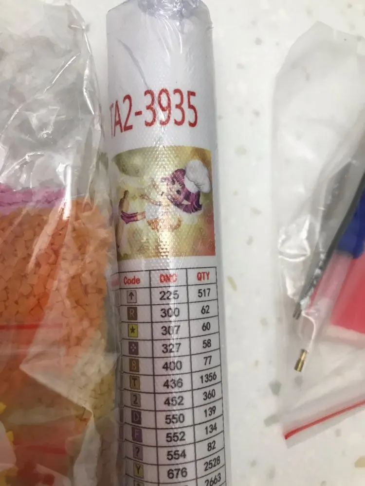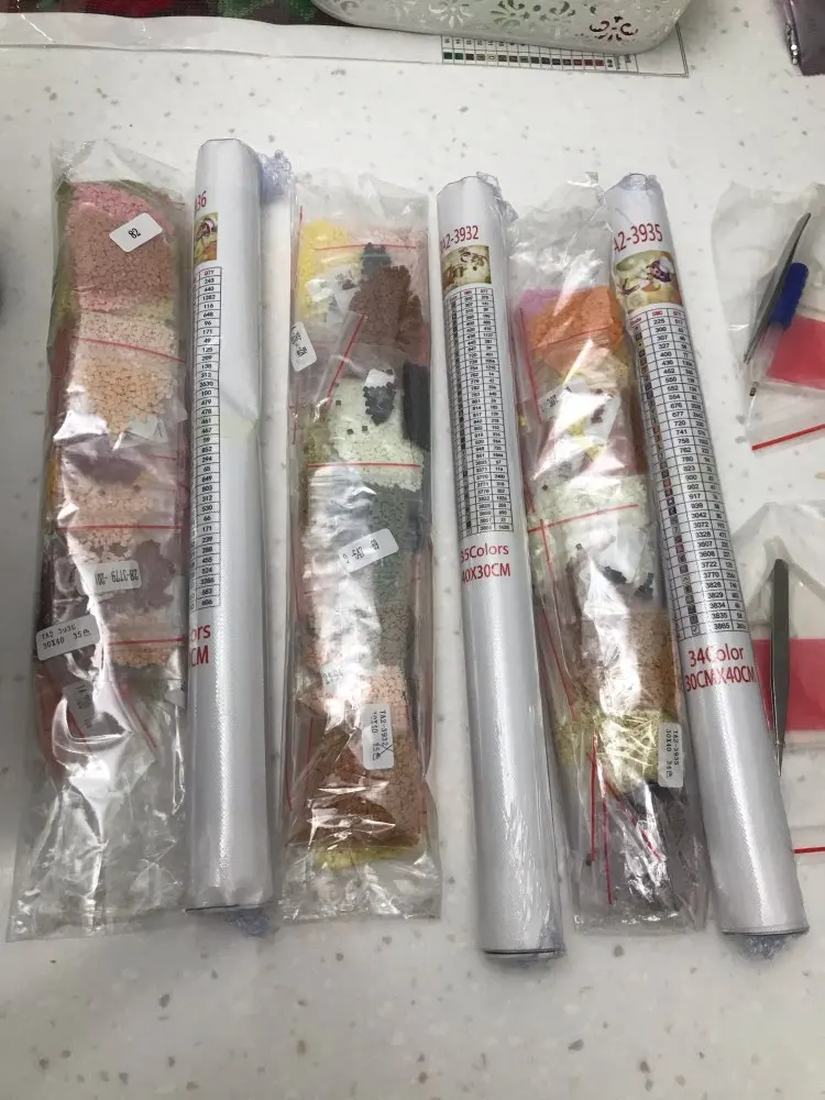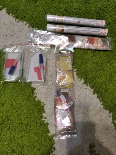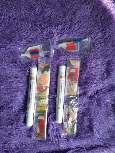 Товар пришёл хорошо упакованым. Картины были намотаны на паралоновий тубос. Комплектация хорошая, стилусы рассчитаны не только на один камушек но есть и на три, и больше. То что размер 30×40 не соответствует, реальный его размер 29х39, но для меня это не есть минус.