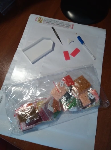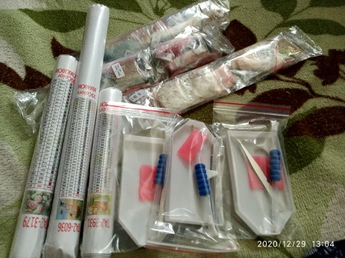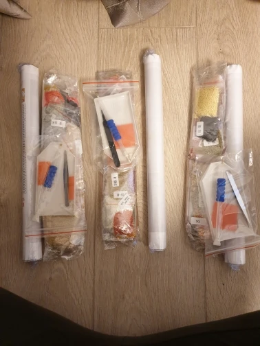 Заказывала 3 картины. Шли долго - 3 месяца. Из инструментов хорошие только лотки, стилусы и клей. Пинцеты оставляют желать лучшего. Потом когда выложу картины - добавлю фото инструментов (сравню пинцет с хуакановским) и самих картин, потому что не нашла как выглядят готовые картины 20×30.