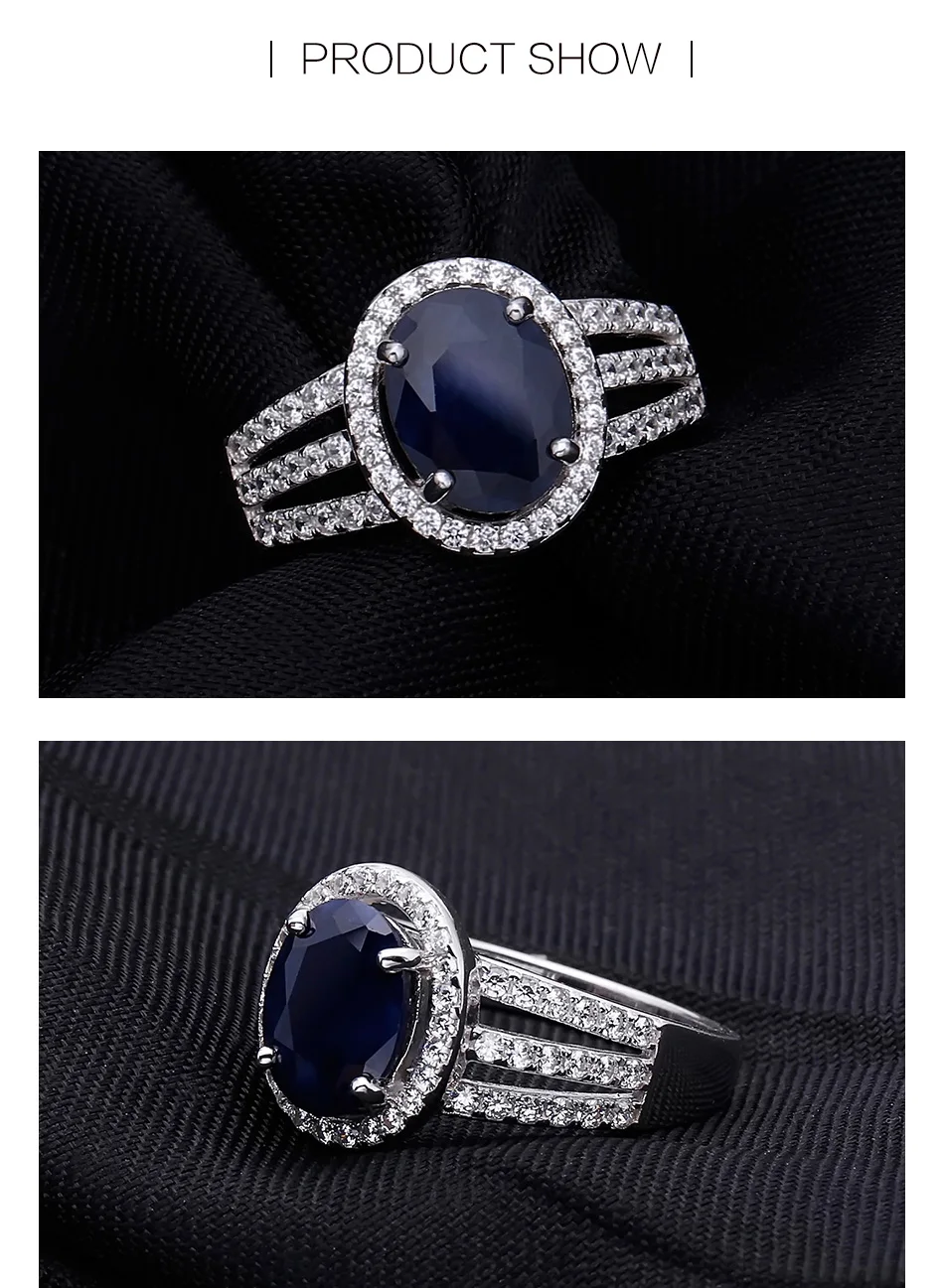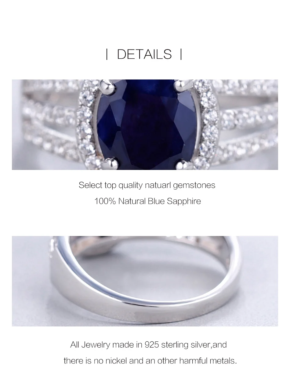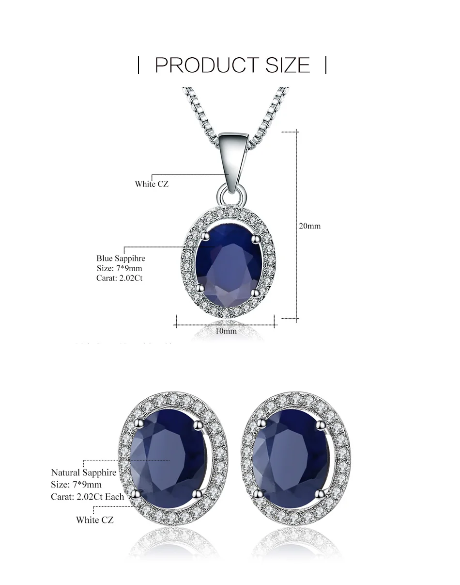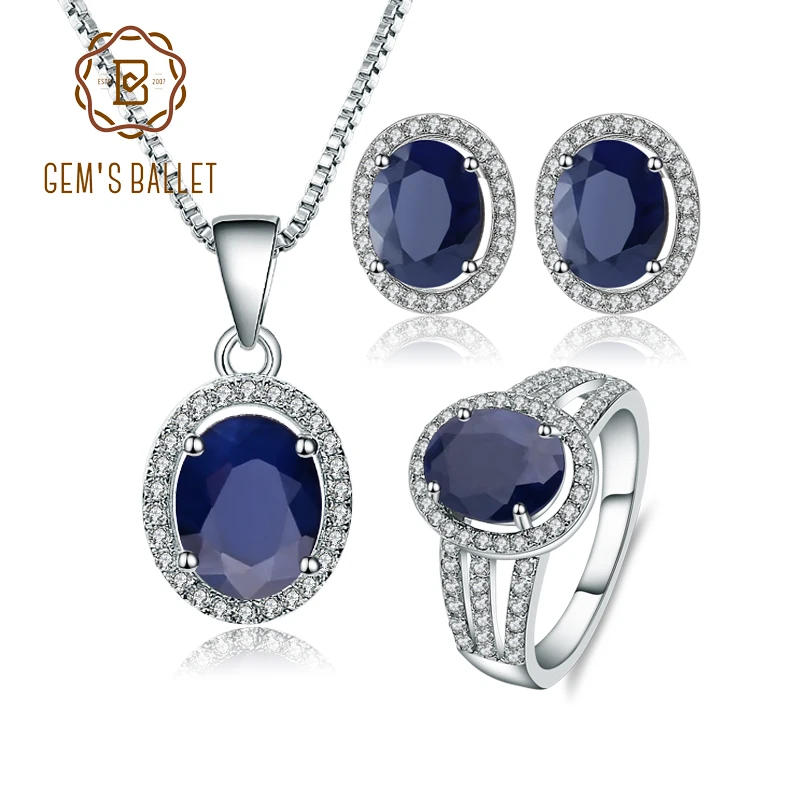 Набор ювелирных украшений GEM'S с подвеской, серьги и кольцо из стерлингового серебра 925 пробы с натуральным голубым сапфиром, 8.08Ct
