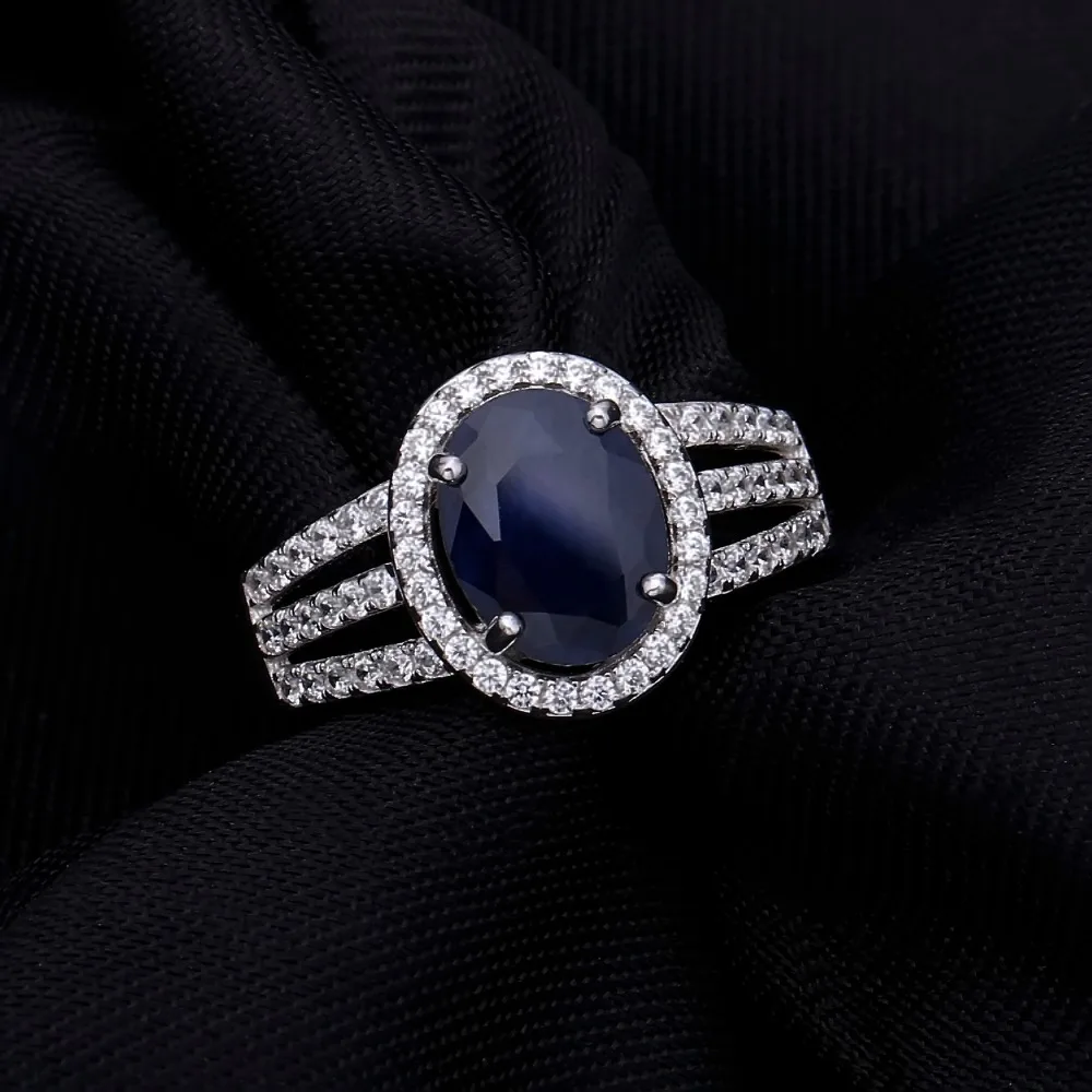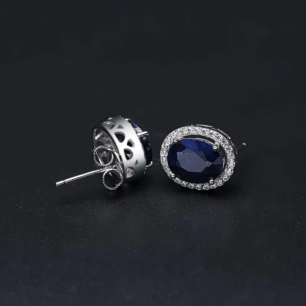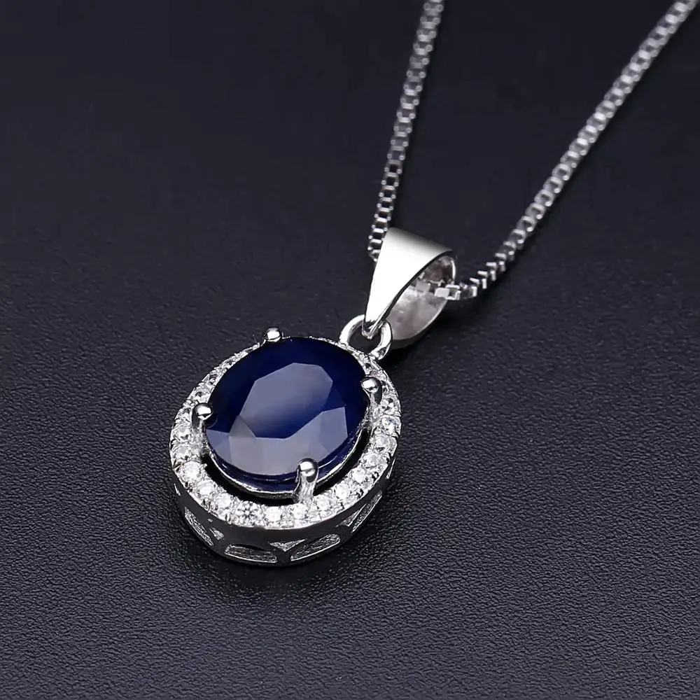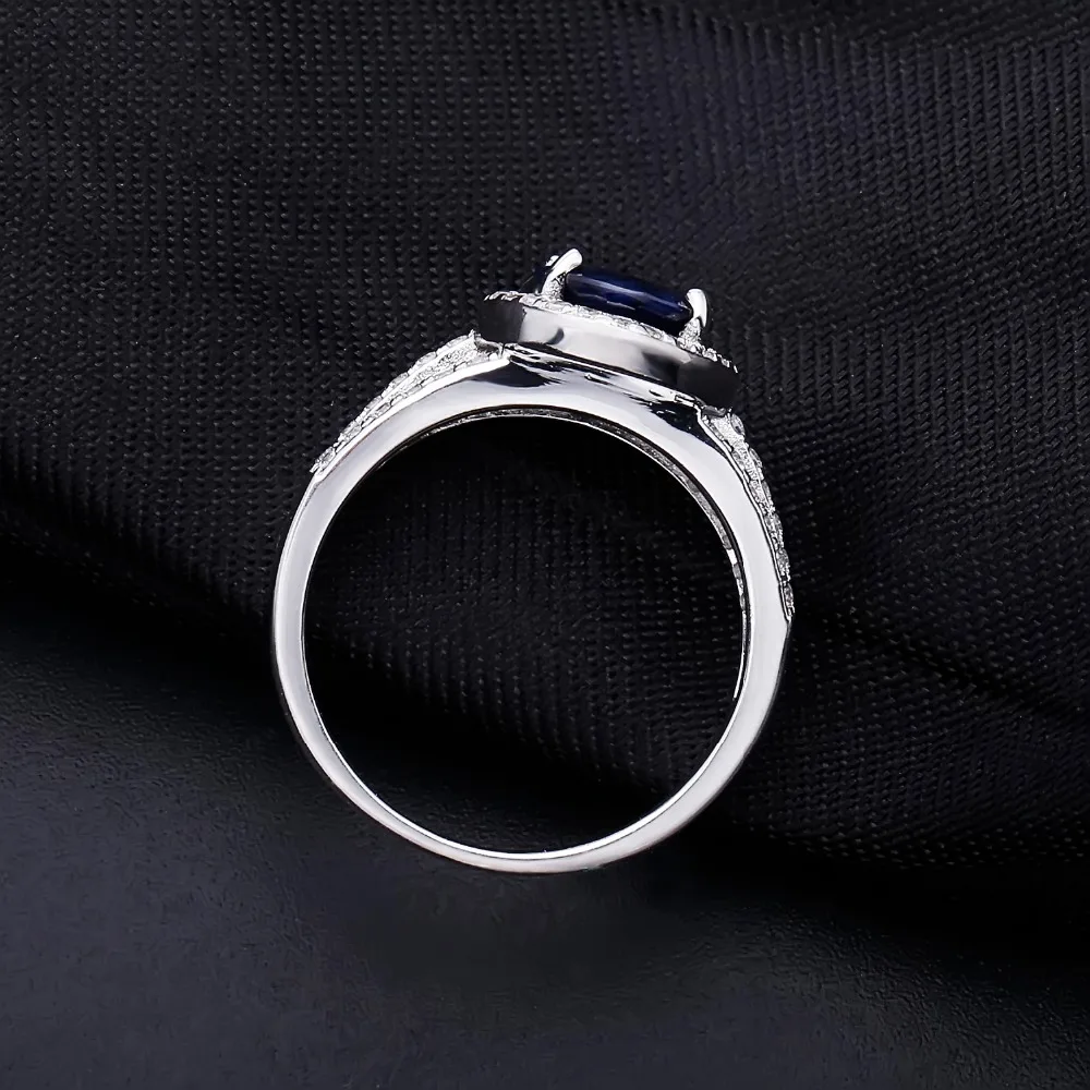 Набор ювелирных украшений GEM'S с подвеской, серьги и кольцо из стерлингового серебра 925 пробы с натуральным голубым сапфиром, 8.08Ct