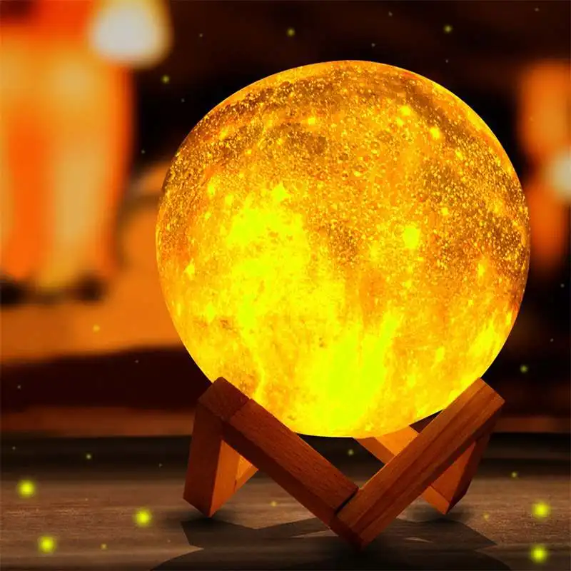 Светильник в форме Луны, Ночной светильник с 3D-принтом, светодиодный светильник в форме Луны с регулируемой яркостью, перезаряжаемый прикроватный столик, настольная лампа, Прямая поставка