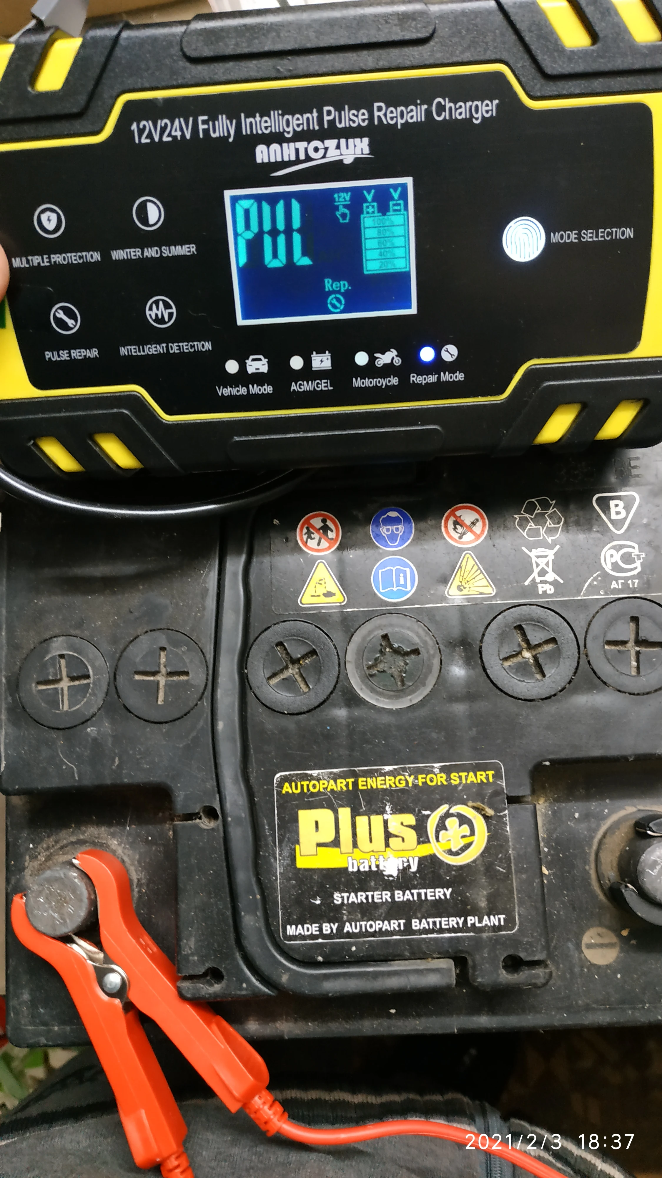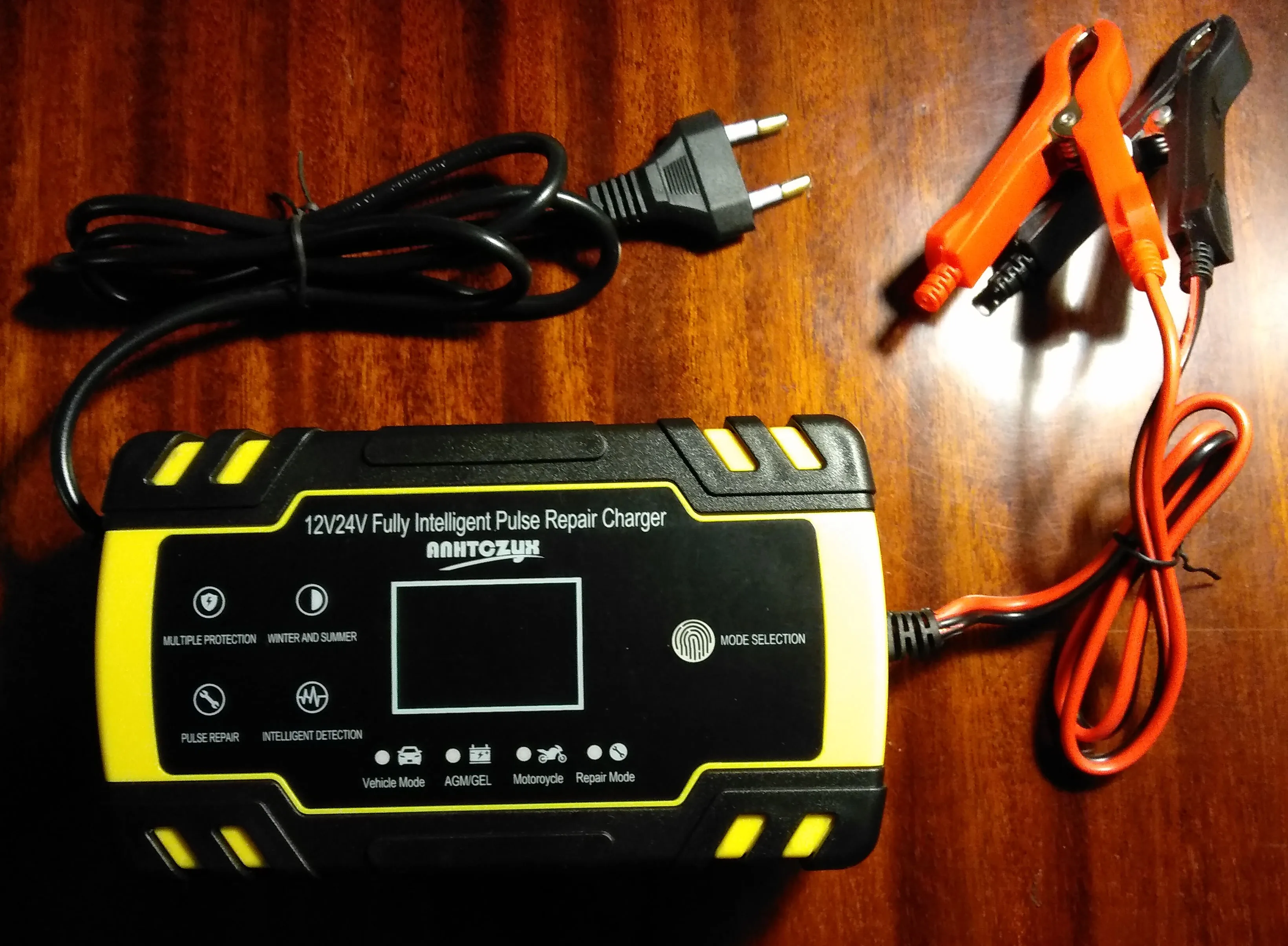 проверил, все работает в авторежиме, есть разные режимы зарядки, зарядка сама определяет тип акума по вольтажу, самостоятельно регулирует силу току при зарядке... НЕ понравилось, что провода для зарядки и кабель питания не съёмные, было бы удобнее хранить и не было вероятности, что в местах изгиба провод переломается