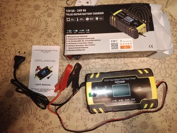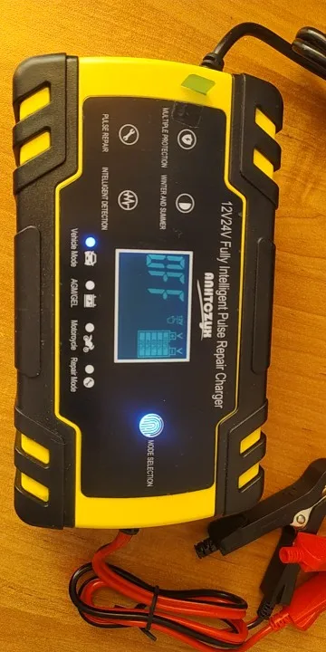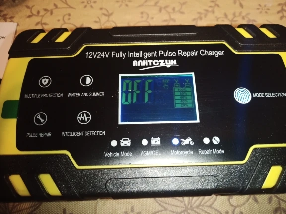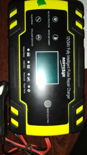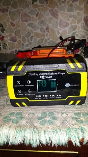 Хорошее и удобное зарядное устройство для разных аккумуляторов по составу, а так же по напряжению на 12в. и 24в. 4 режима в меню, автоматически отключается после заряда аккумулятора, имеет встроеный вентилятор для охлаждения во время работы, провода хорошие, зажимы сильные и изолированые. Продавец быстро отправил заказ, доставка в срок, трек номер отслеживался. Благодарю продавца за отличный товар и хорошую работу!