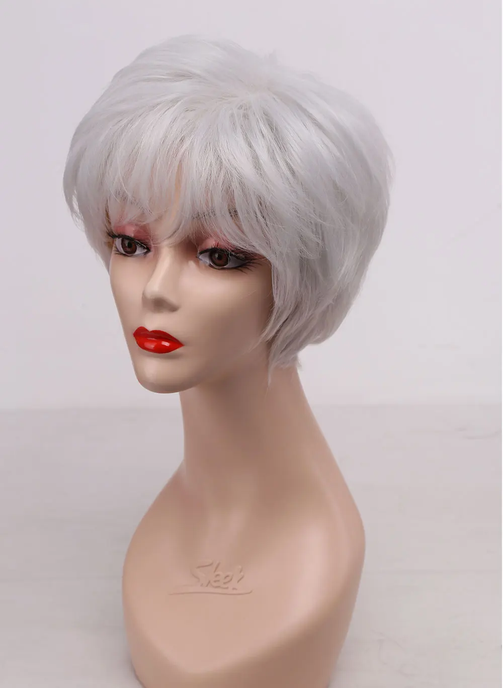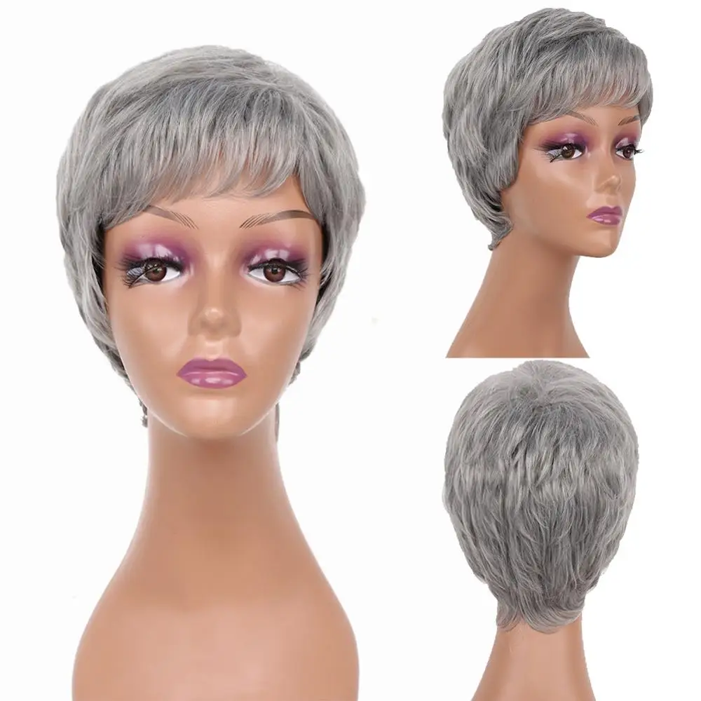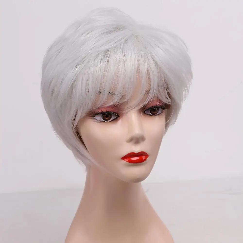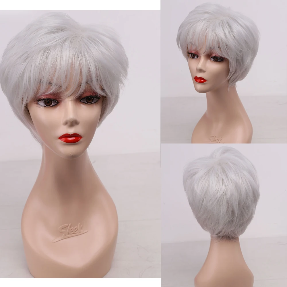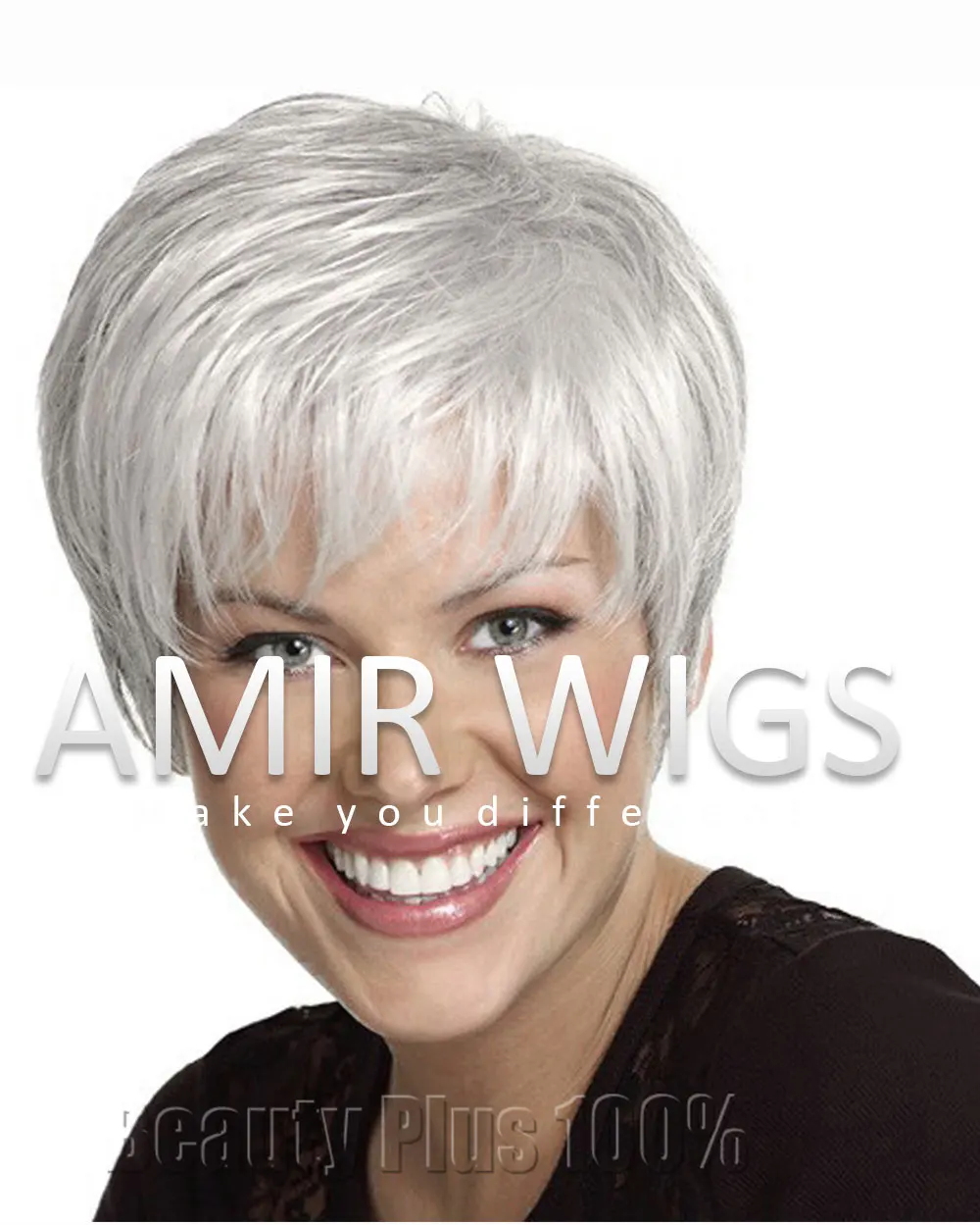 Amir, женский парик, серебристо-серый, белый, Омбре, синтетический, короткий, многослойный, вьющиеся волосы, пышная челка, коричневые, короткие, волнистые волосы, парики для косплея