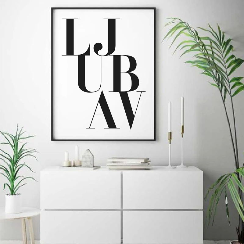 Черно-белый LJUBAV минималистическая цитата, холст, художественный принт, сербы, любовь, поговорка, картина, сербийский домашний декор для стен