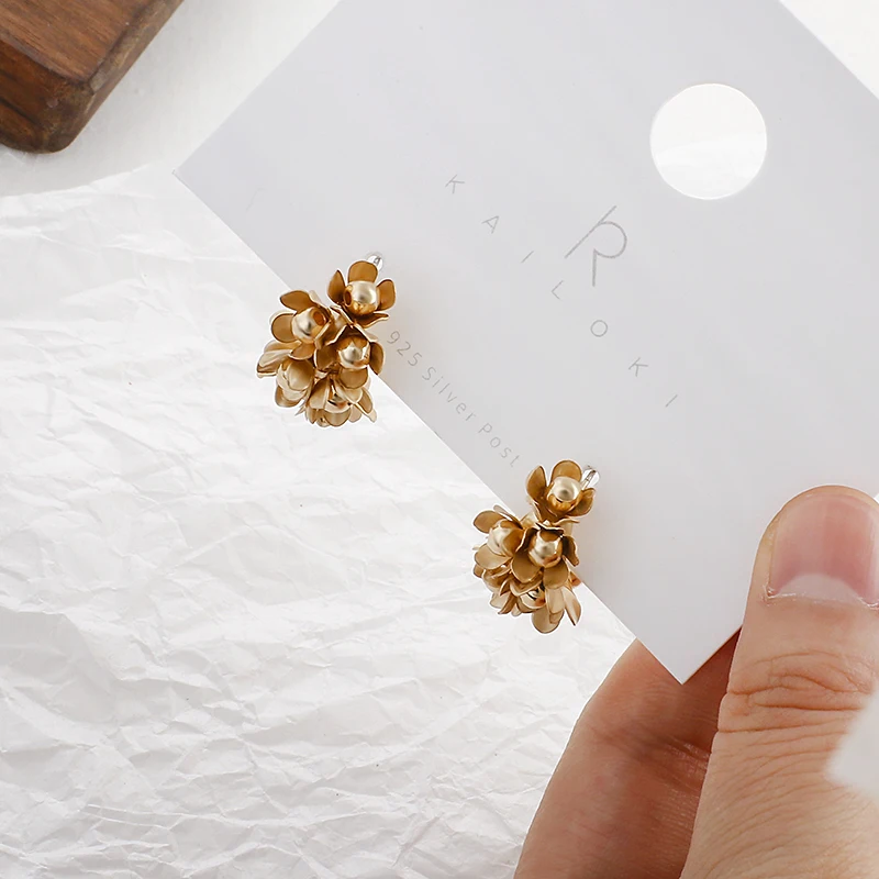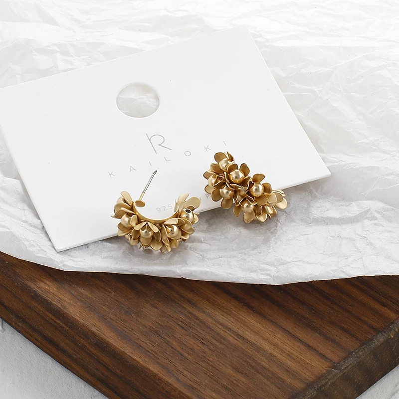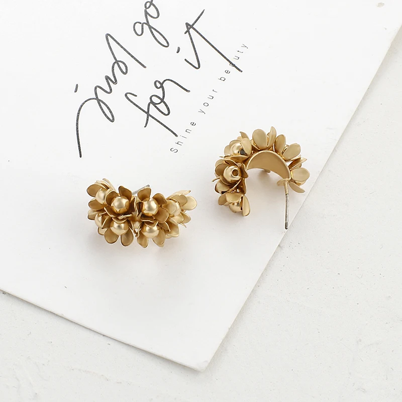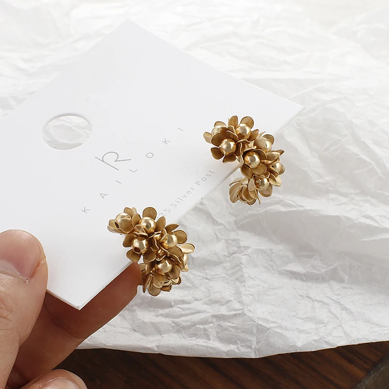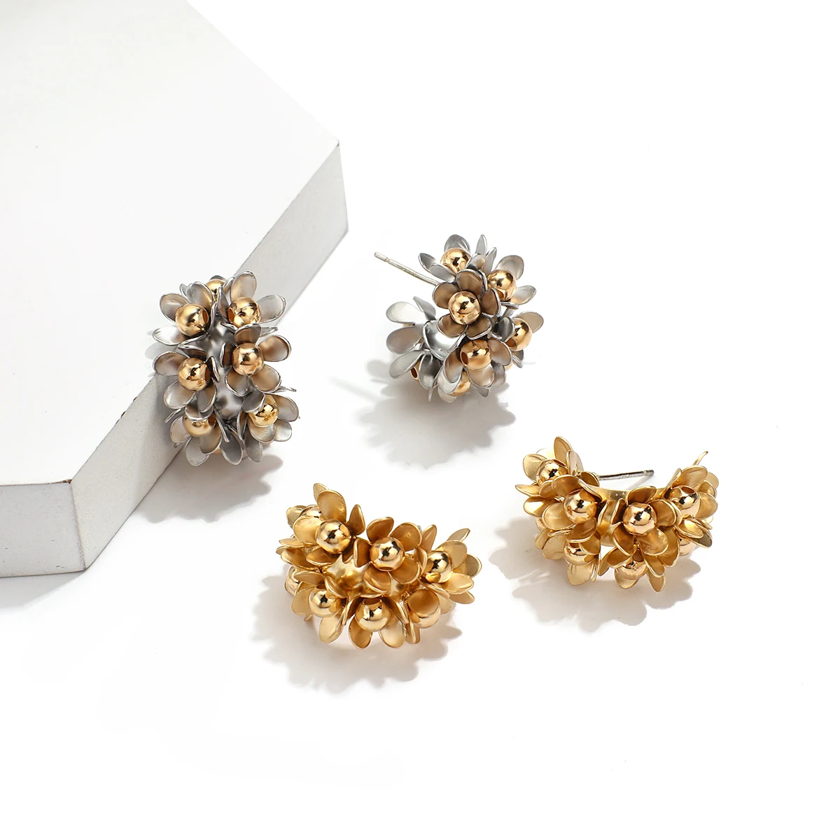 Женские крупные серьги-гвоздики AENSOA, европейские Винтажные серьги золотого цвета с металлическим цветком, 2021, сережки Oorbellen