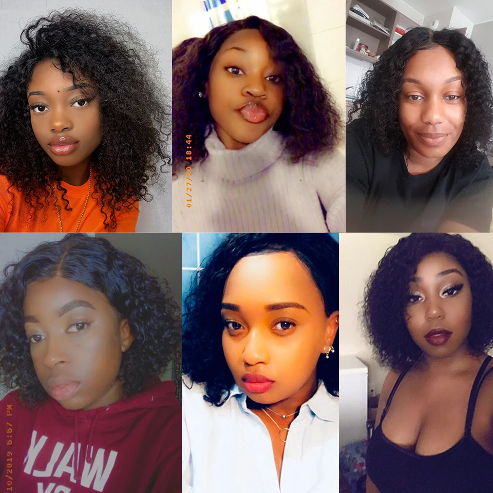 Sleek короткие парики из человеческих волос для Для женщин кудрявый локон Синтетические волосы на кружеве парики из натуральных волос Curl левая боковая часть парики шнурка бразильские парики из натуральных волос