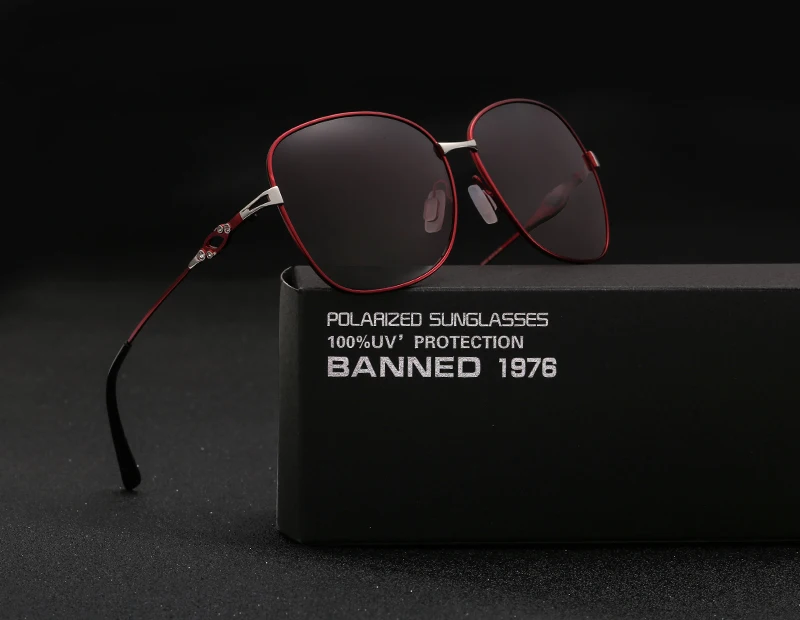 Женские поляризационные солнцезащитные очки в металлической оправе