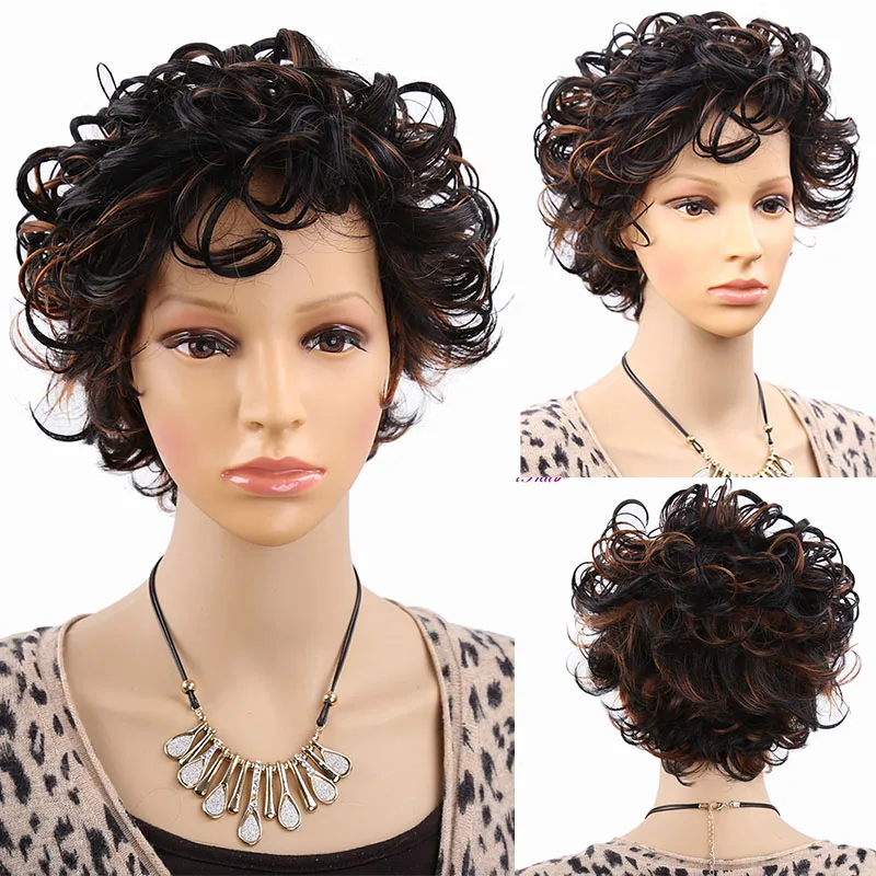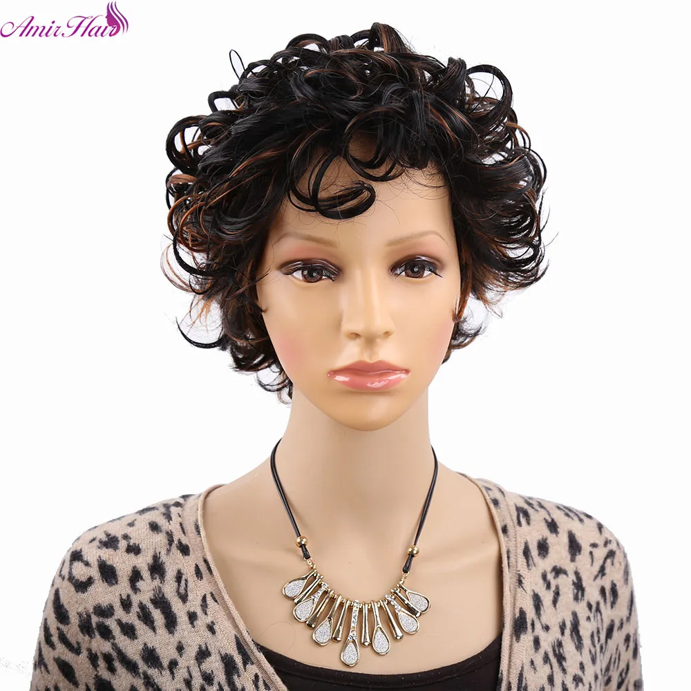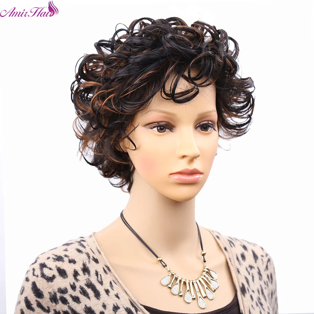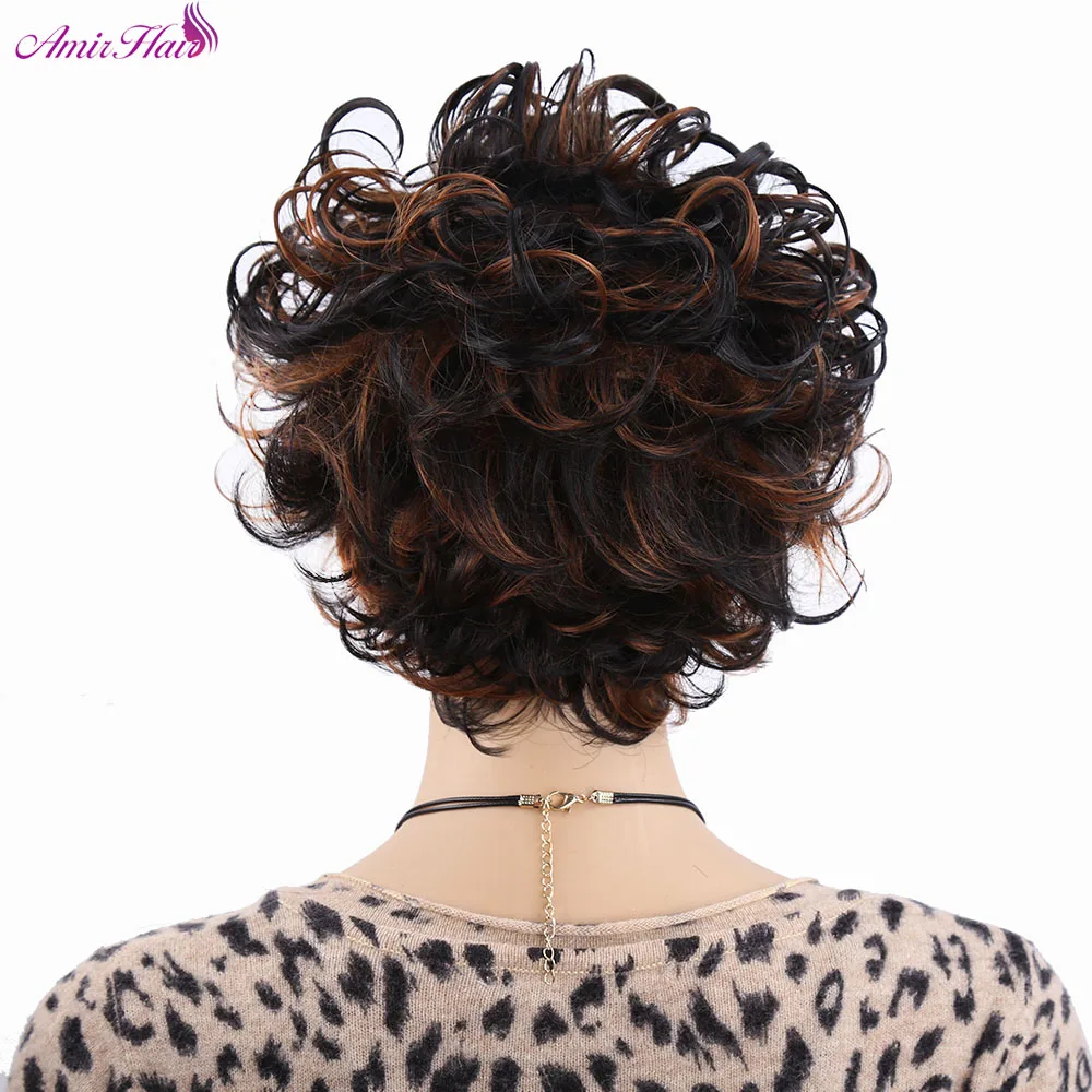 Amir синтетические Короткие вьющиеся парики для женщин черный парик вьющиеся волосы смешанные коричневые афро парики искусственные волосы косплей парик
