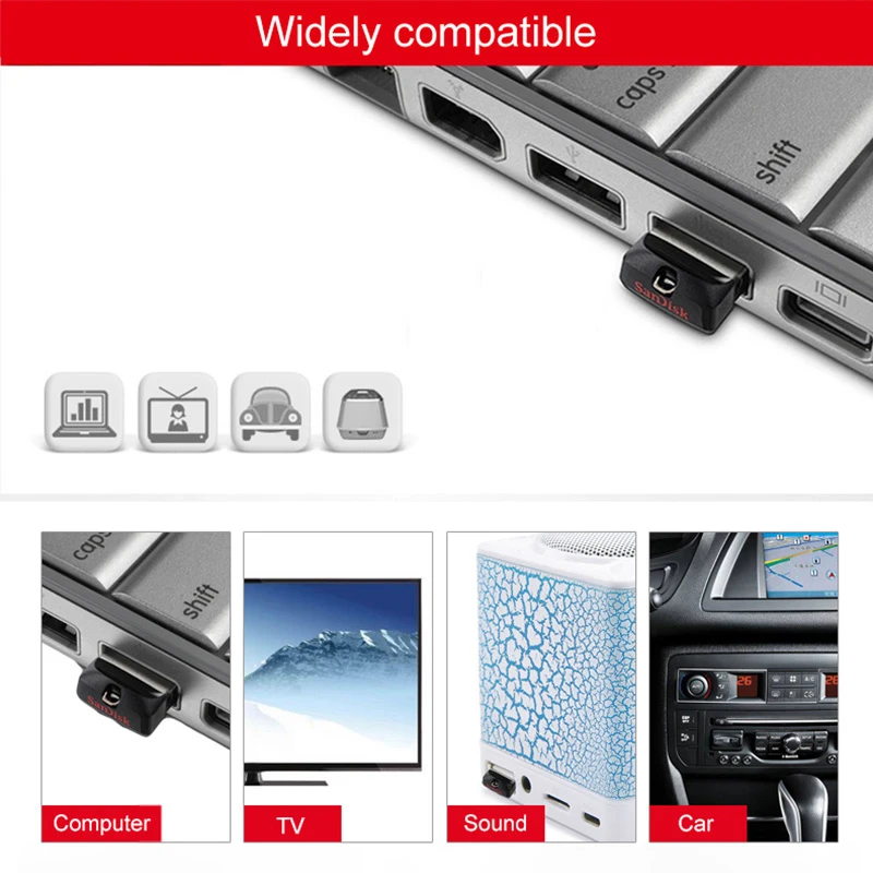 Двойной Флеш-накопитель SanDisk супер мини USB флэш-накопитель 32GB USB 2,0 Cruzer Fit CZ33 ручка флэш-накопитель 64Гб флеш-накопитель 16 Гб флэш-накопитель
