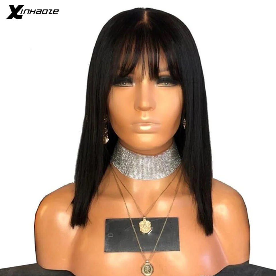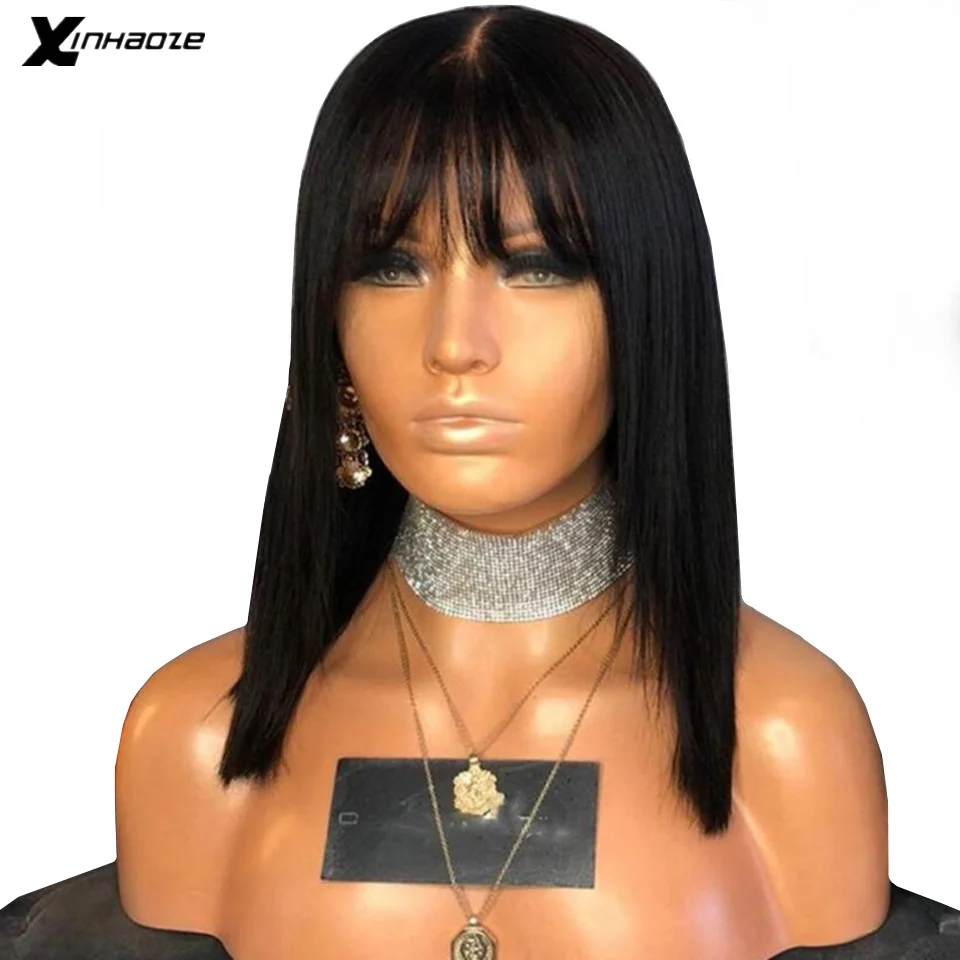 150% короткий Боб, глубокая часть 13x 6, парики из натуральных волос на шнурке с челкой для чернокожих женщин, бразильский парик Remy 13x 4 на шнурке спереди