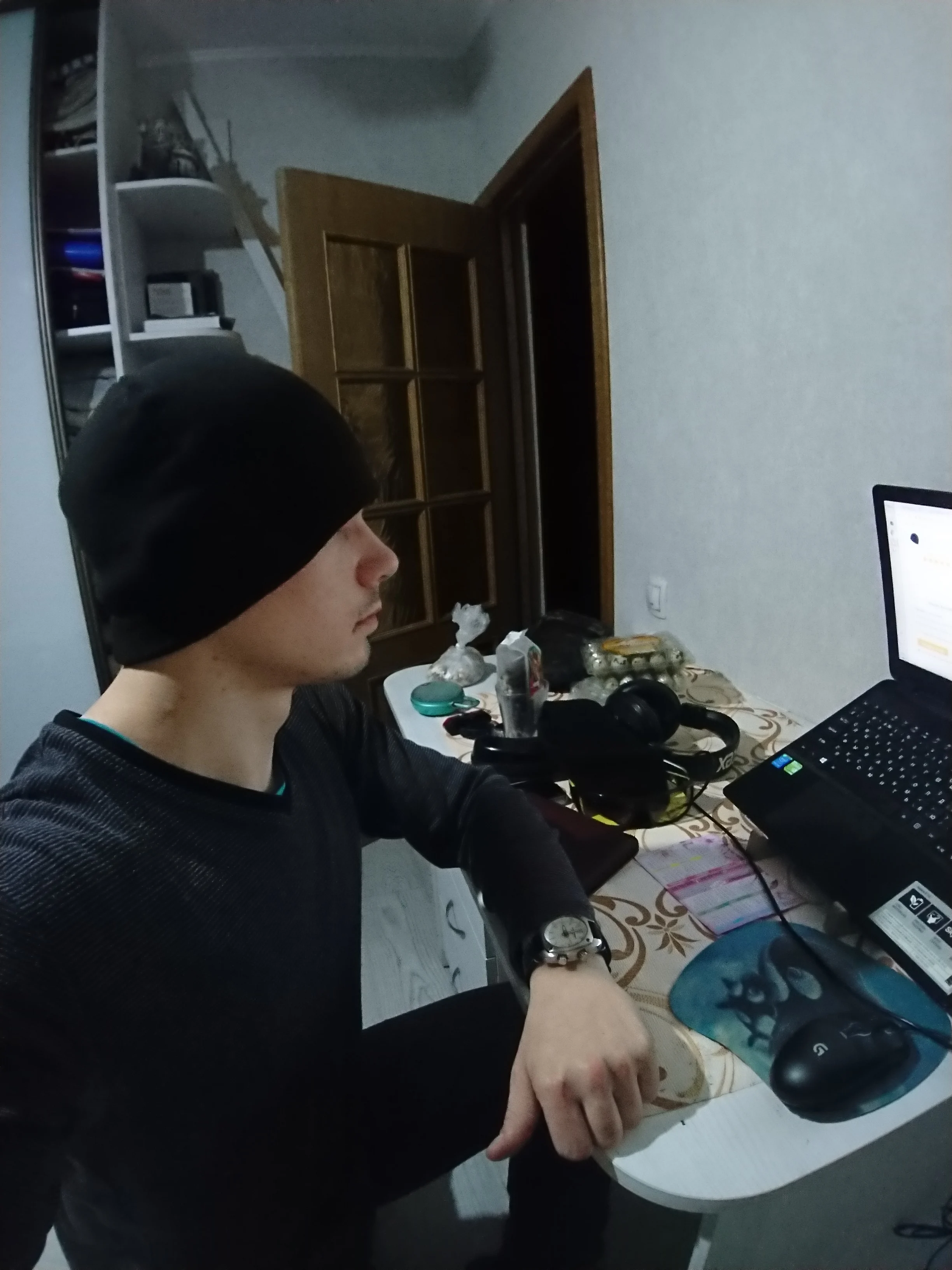 Если не натягивать на затылок, а носить на ушах, то надо подворачивать края. Иначе сверху остается хороший кусок ткани и видон получается тот ещё.