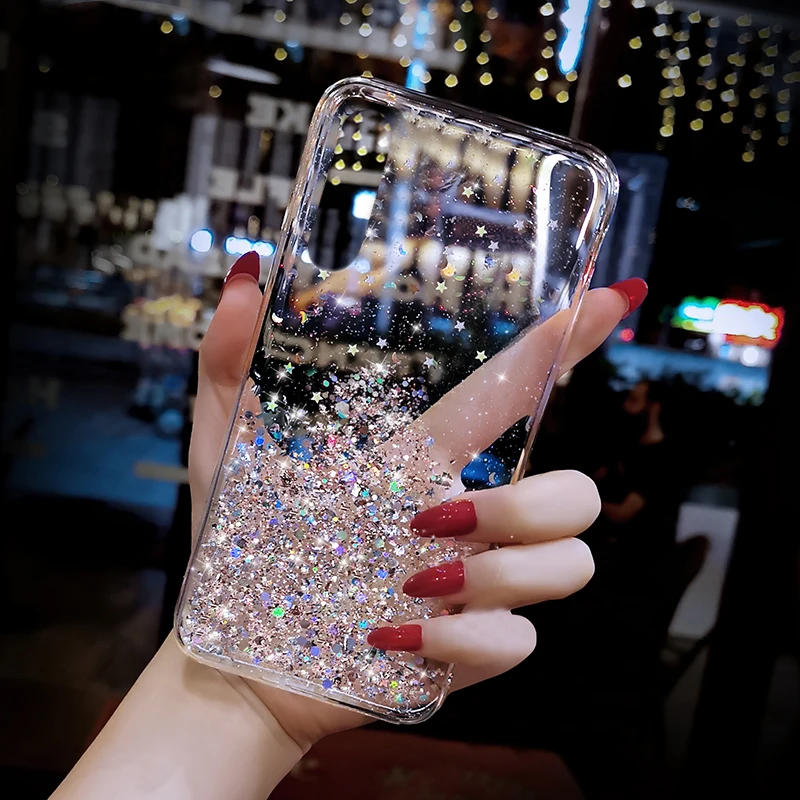 Чехол с блестками для Xiaomi Mi 10 Lite, 9 SE, A3, POCO X3, Redmi 9...
