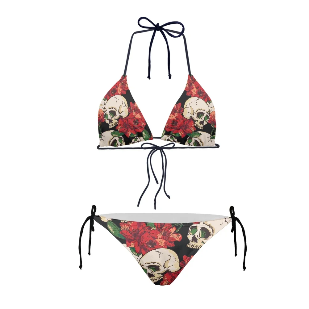 Женский купальный костюм, комплект бикини с сахарным черепом и розовым цветочным принтом, мягкие купальные костюмы, Mujer, стринги, купальник, Femme