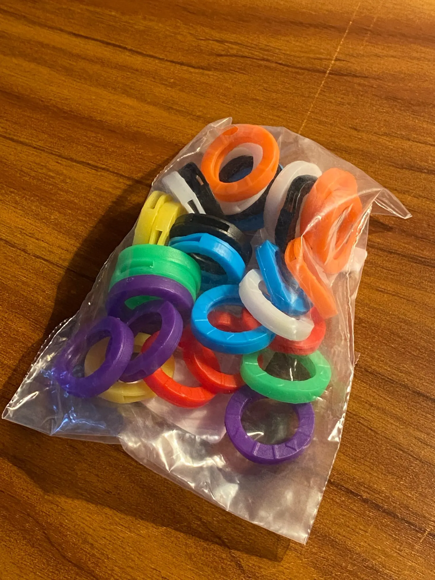 Кольца соответствуют стандартным (стандартным) клавишам. Очень сложно подобрать ключи большего размера. Я сделал это, но он, вероятно, сломается, так как слишком растягивается. Я бы хотел, чтобы продавец включил несколько размеров.