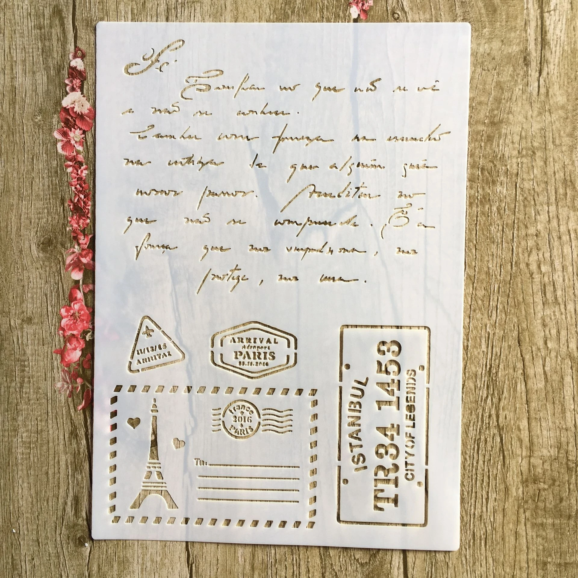 A4 29*21 см письмо железная башня DIY трафареты настенная живопись раскраска для скрапбукинга рельефная декоративная альбомная Бумага Шаблон для карточек