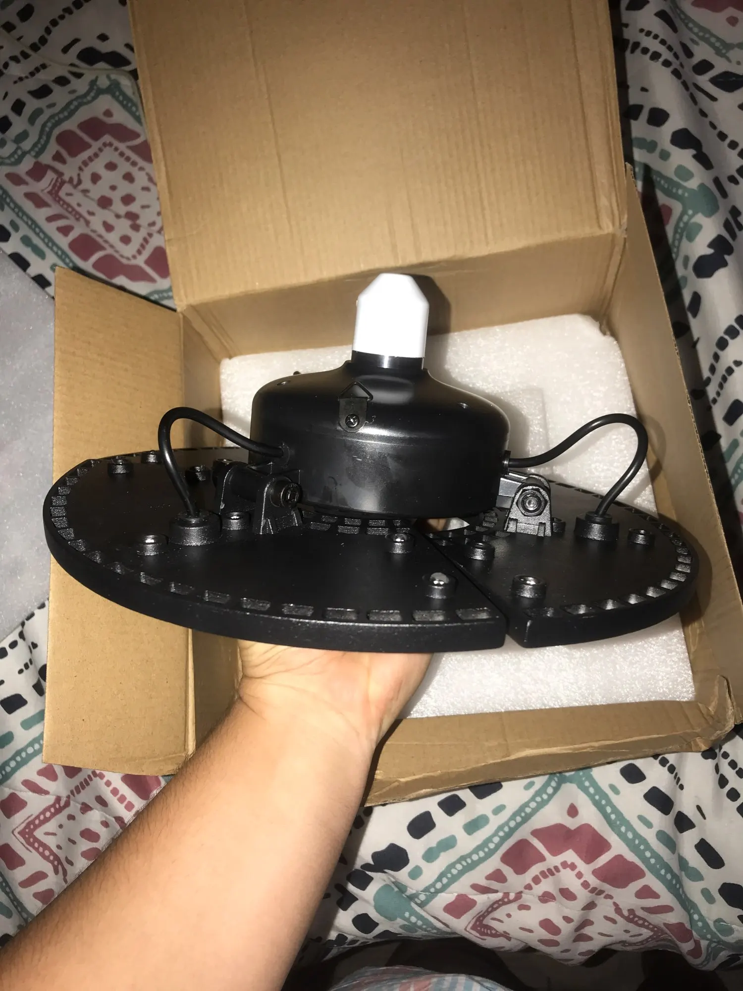 Заказ пришёл быстро. Доставку делала через РФ, была небольшая доплата, но зато пришла посылка даже раньше заявленного срока. Просила продавца сделать усиленную упаковку, чтобы при пересылка товар не повредился,продавец пообещал, но усиления я не увидела. Правда упаковка пришла целая, не помятое, товар в хорошем виде, без дефектов.Кабель к лампе(на фото белый) проделали уже сами. В оригинале она идёт без него. Лампа мощная, освещает хорошо, как это скажется на выращивании рассады пока сказать не могу. Об этом добавлю отзыв позднее. Рекомендую продавца.