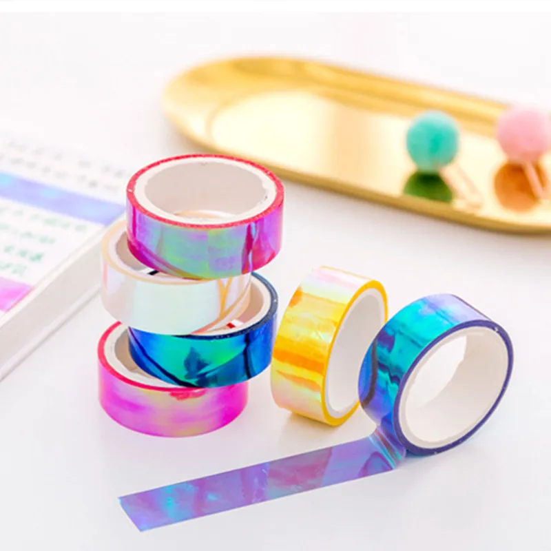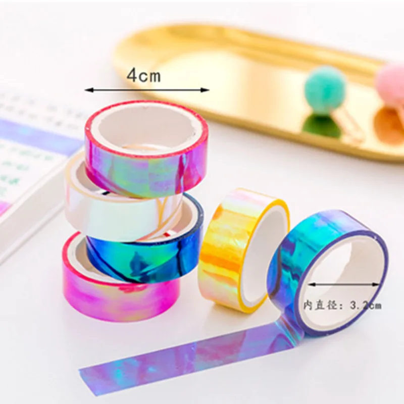 Лазерная лента Washi канцелярские Скрапбукинг декоративный Скотч для монтажа светодиодных лампочек рукоделие изоляционная лента школьные принадлежности Rainbow 1 шт. блеск Бумага