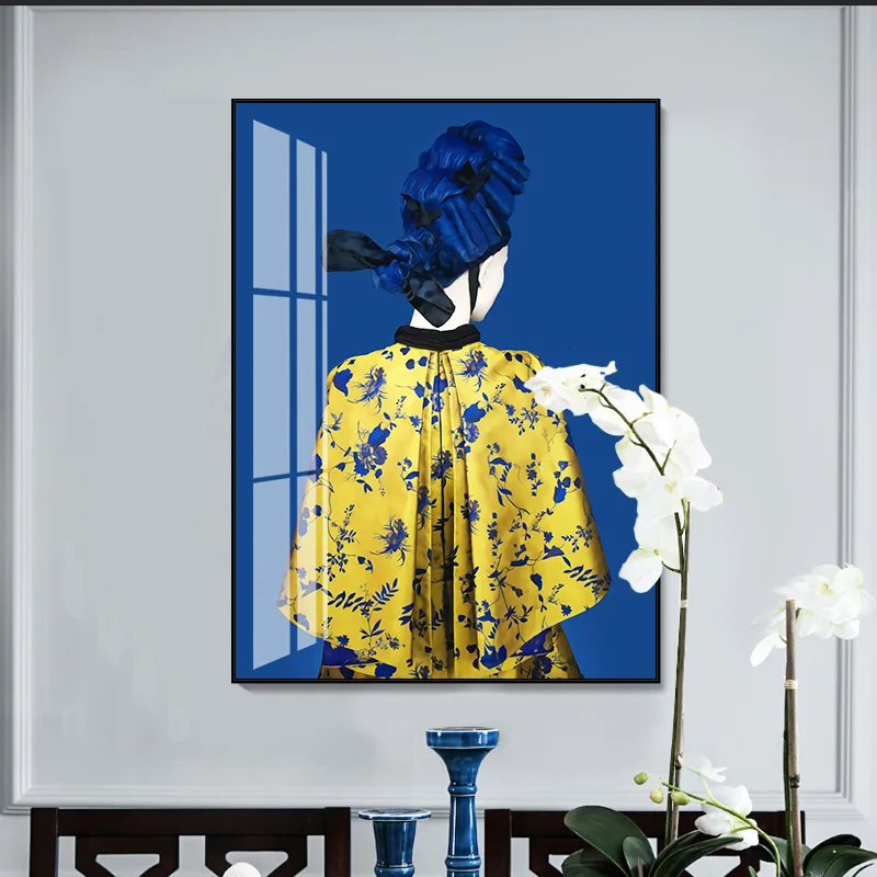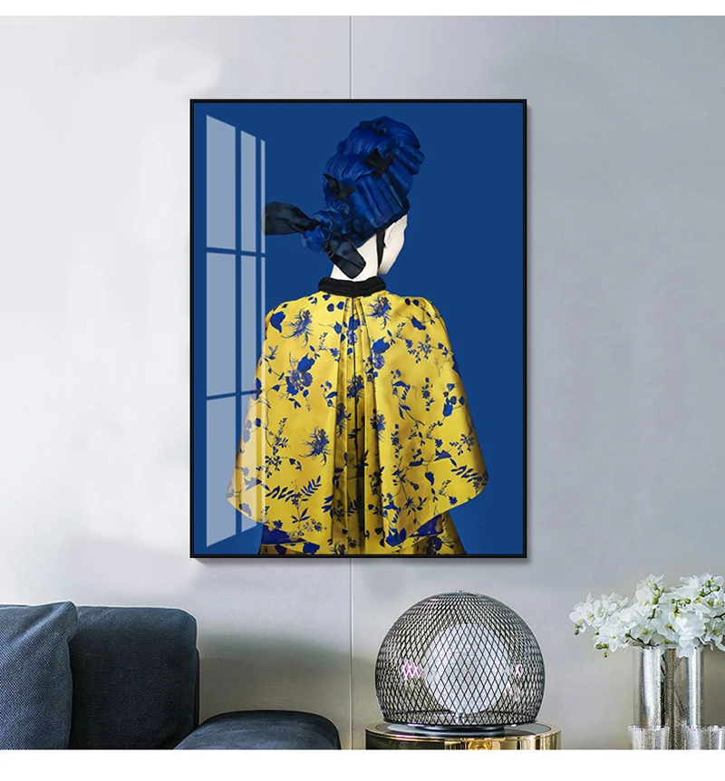 Традиционные китайские Красивые старинные желтые костюмы с синим узором хлопковые абстрактные плакаты настенные картины для домашнего декора icon star icon star icon star icon star icon star