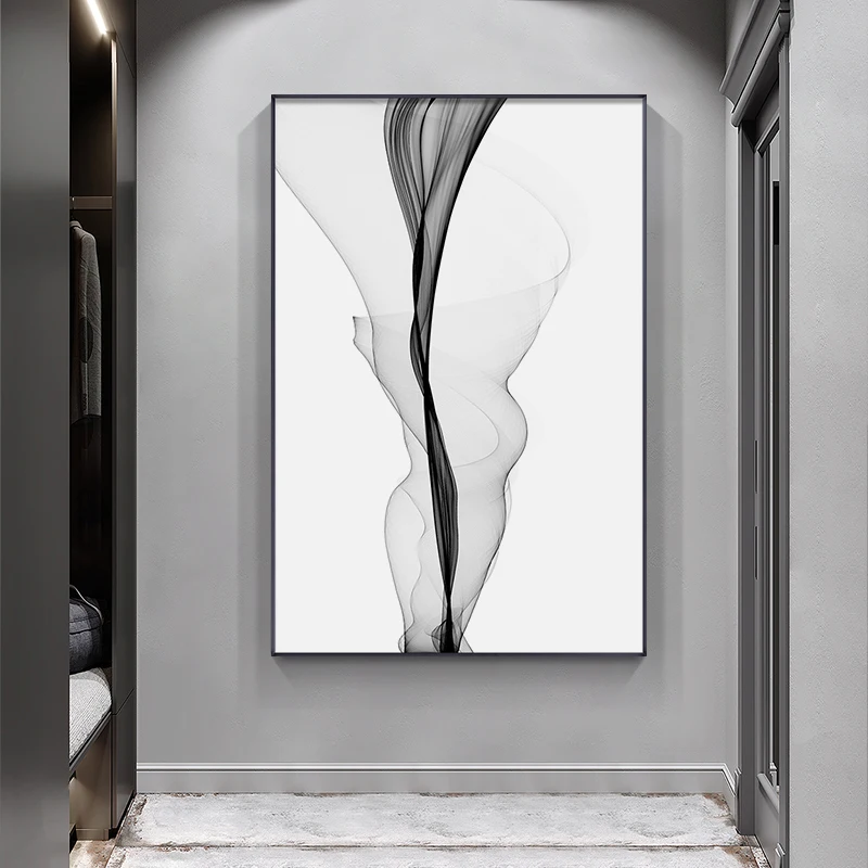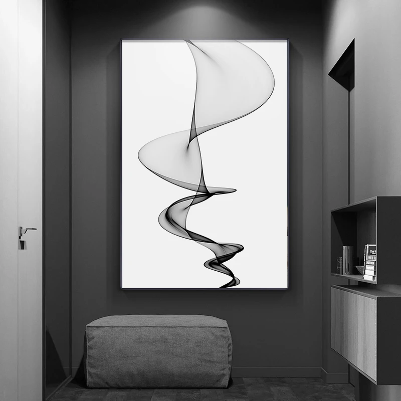 Абстрактная Минималистичная креативная картина потока дыма, постеры и печать на холсте, уникальные художественные настенные серые картины для гостиной, спальни