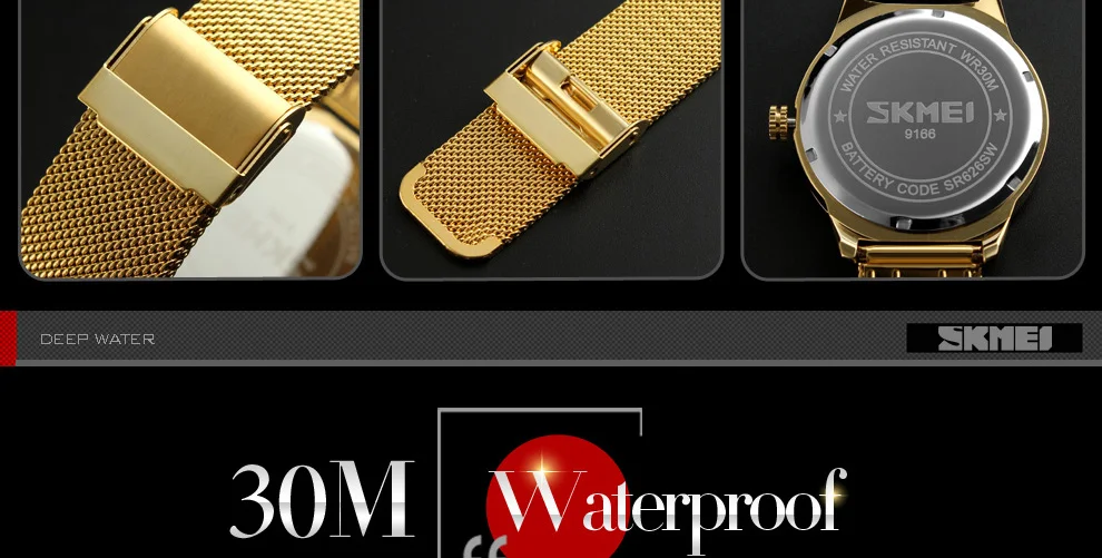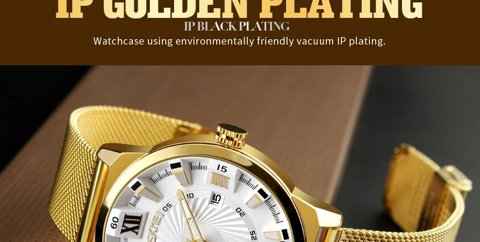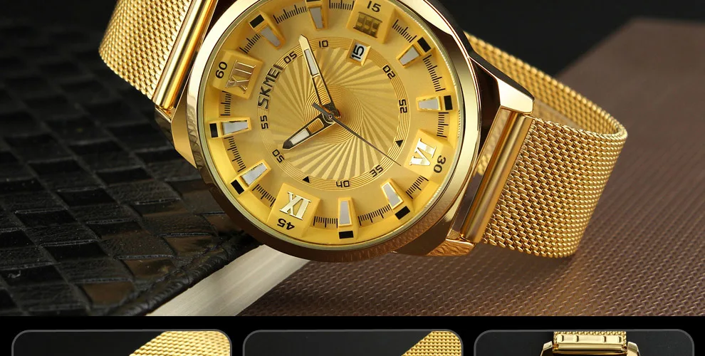 SKMEI брендовые деловые мужские часы роскошные золотые стальные сетчатые браслеты кварцевые наручные часы оригинальные 9166 relogio masculino