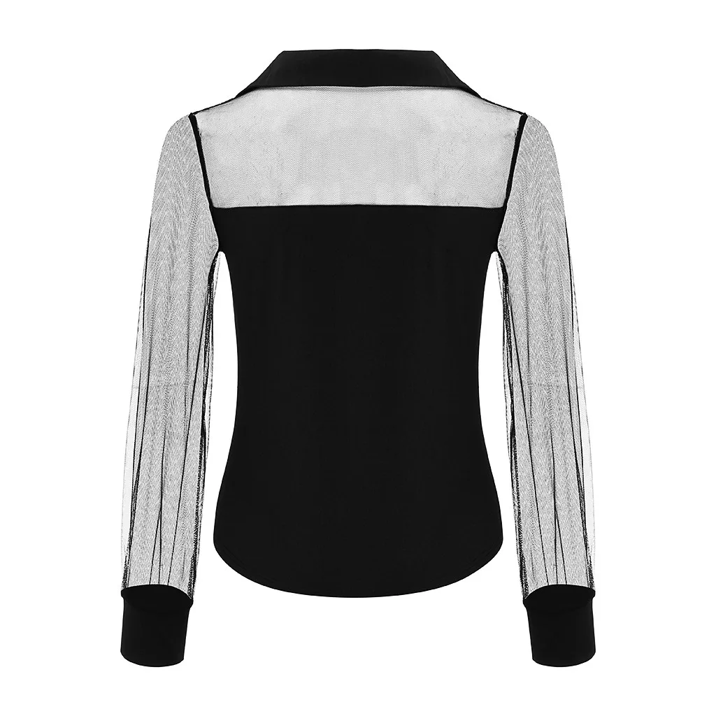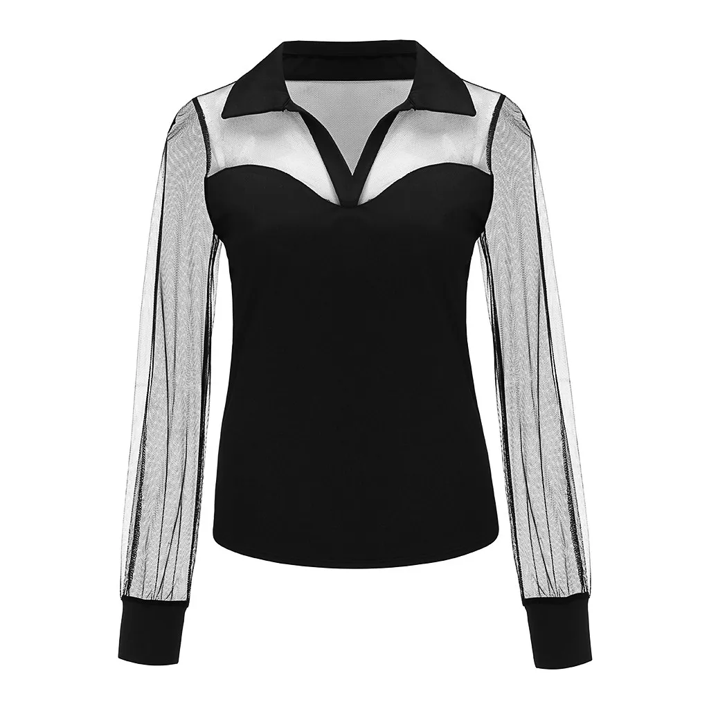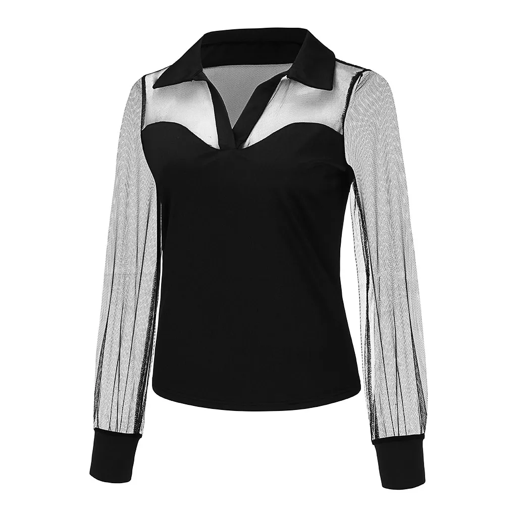 Женская прозрачная блузка с отложным воротником, длинным рукавом