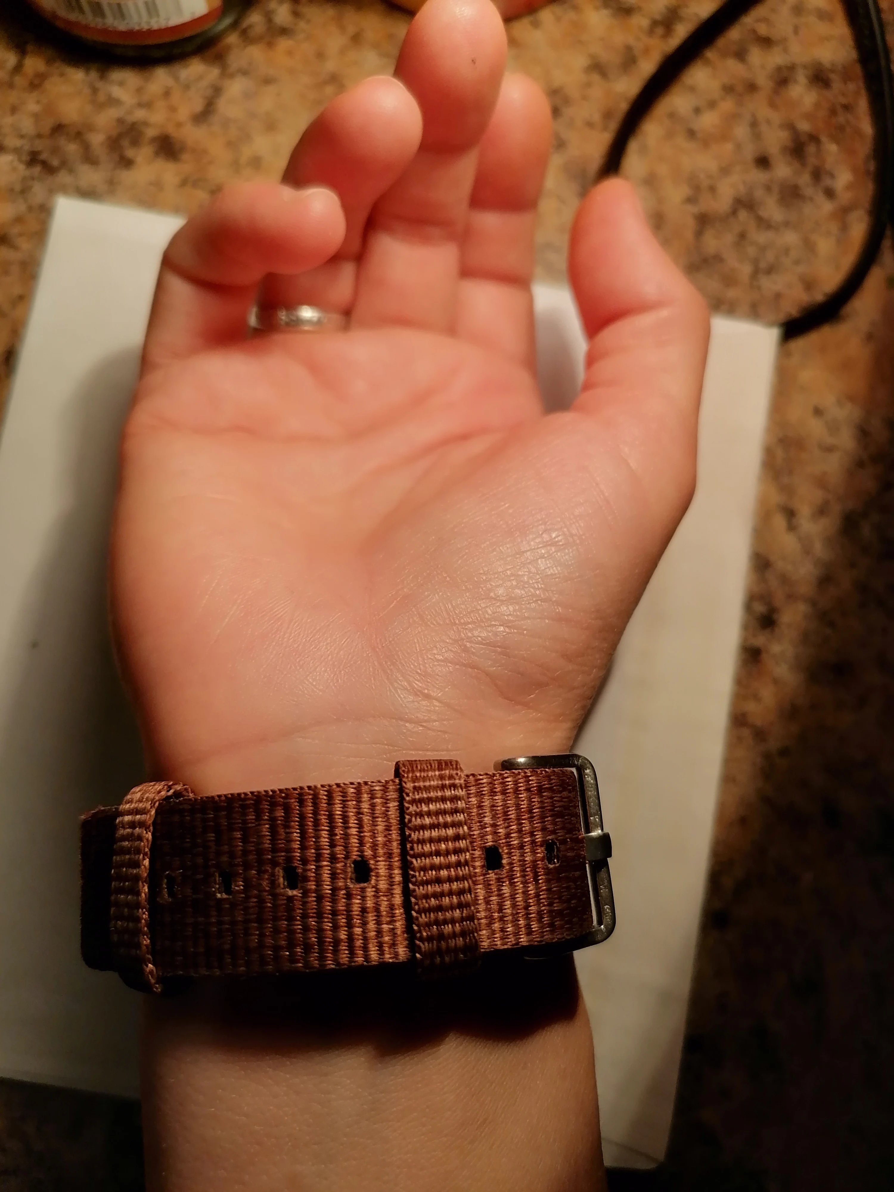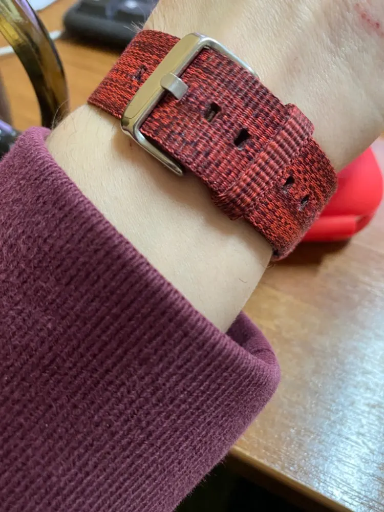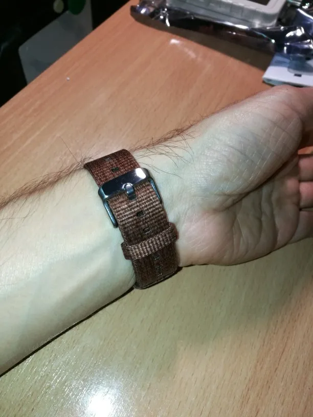 отличный ремешок. немного повозился с засовыванием в него металлических "Гвоздиков". качество ремешка понравилось, ткань достаточно жёсткая, сидит на руке отлично