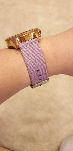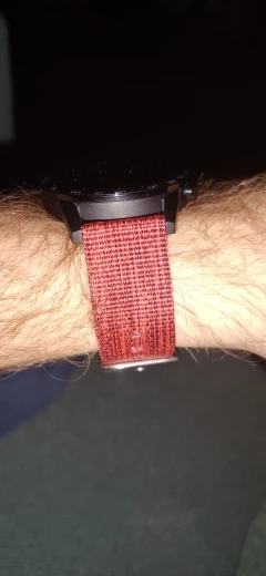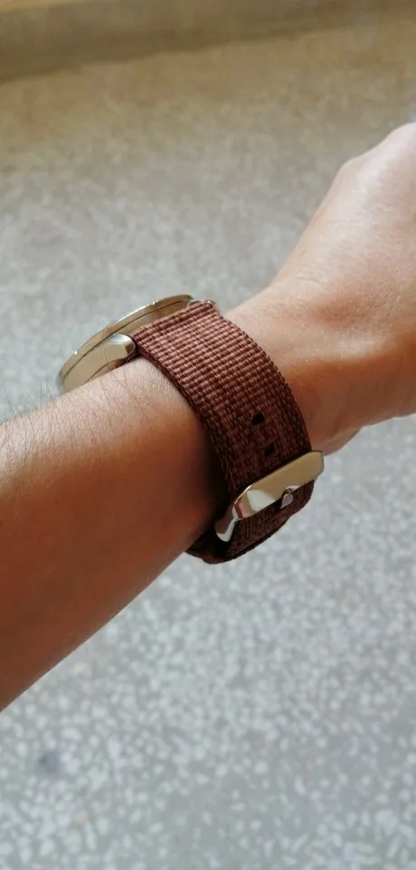 Интересный ремешок. Действительно нейлоновый, не тканевый. Немного как бы "искусственный". Выглядит дешево, на дорогие смарт часы я бы такой не поставил. Годен для недорогих, электронных часов.