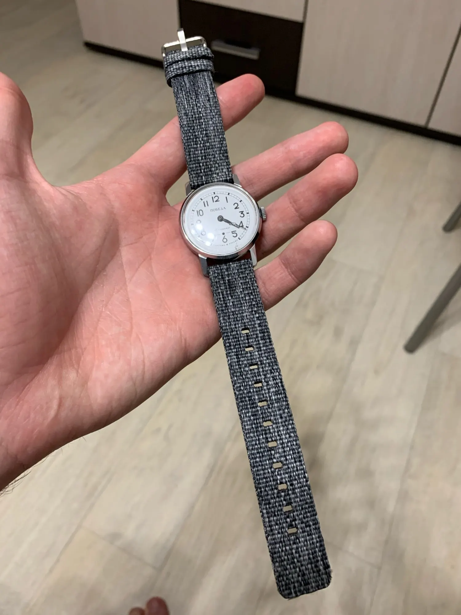 А старые видавшие виды Командирские с ним не так уж и плохо смотрятся. Брал на пробу взамен ремешкам из кожзама, которые имеют тенденцию трескаться. Материал плотный, поплотнее строп, которые можно найти в швейных магазинах, отверстий много, для тонкой руки ничего вырезать не придется, они обожжены, поэтому рваться не должны. Как он будет вести себя дальше - покажет только время, но день ношения часов на этом ремешке пока неприятностей не выявил. Спасибо!