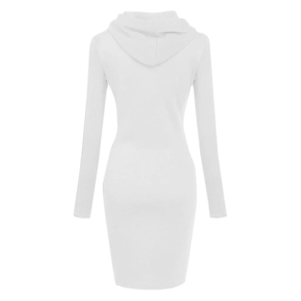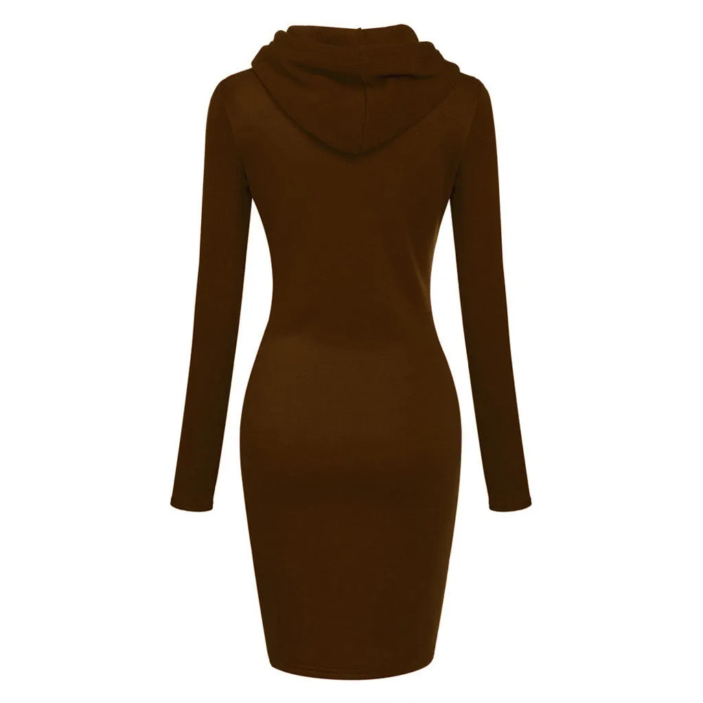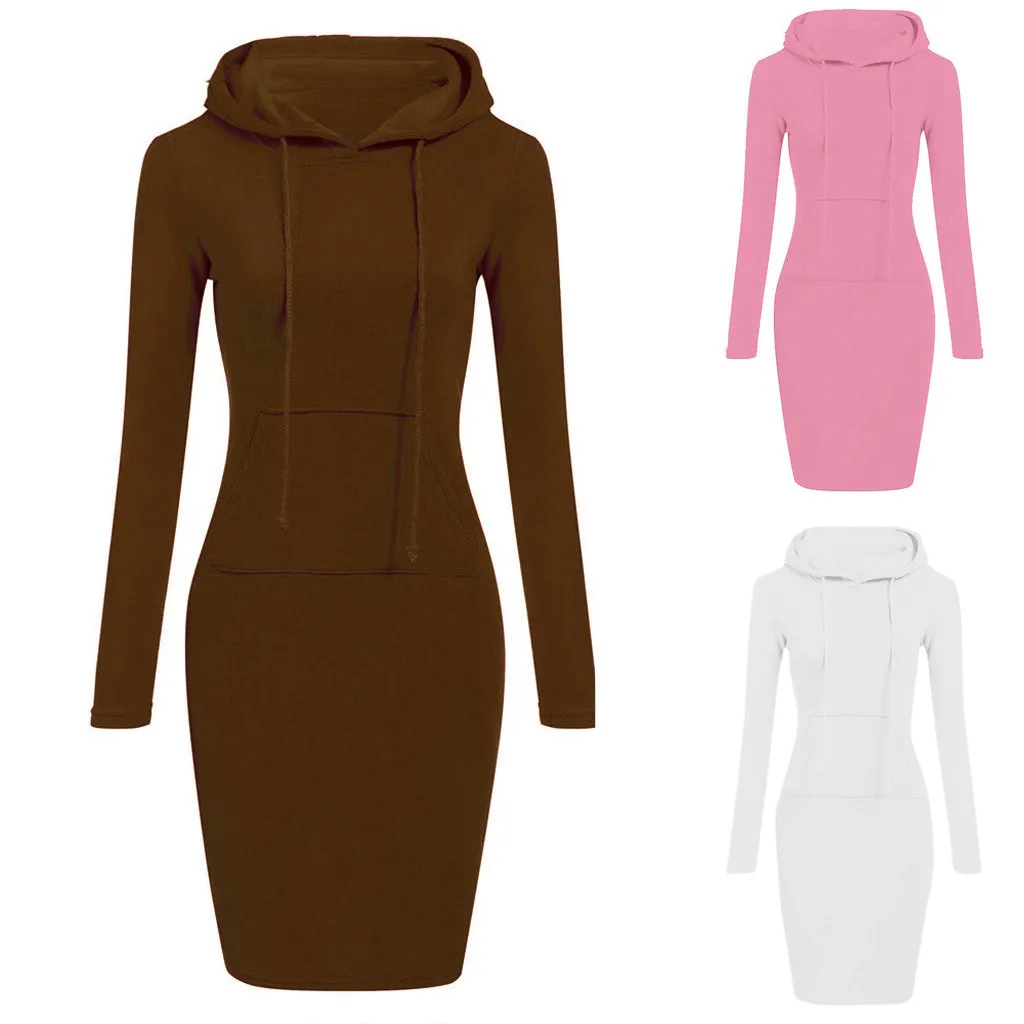 Осенне-зимнее женское облегающее платье, теплое женское платье с длинным рукавом, однотонное лоскутное повседневное длинное платье-свитер с капюшоном, Z0119